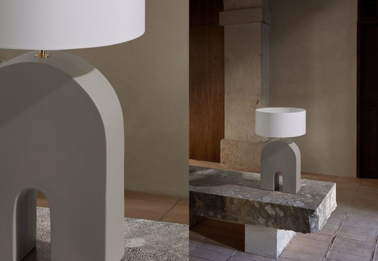 Дизайнерское основание настольной лампы со стальной конструкцией в золотом, хромированном, черном или белом исполнении и керамическим скульптурным основанием в цвете, который вы выбираете из представленной палитры.