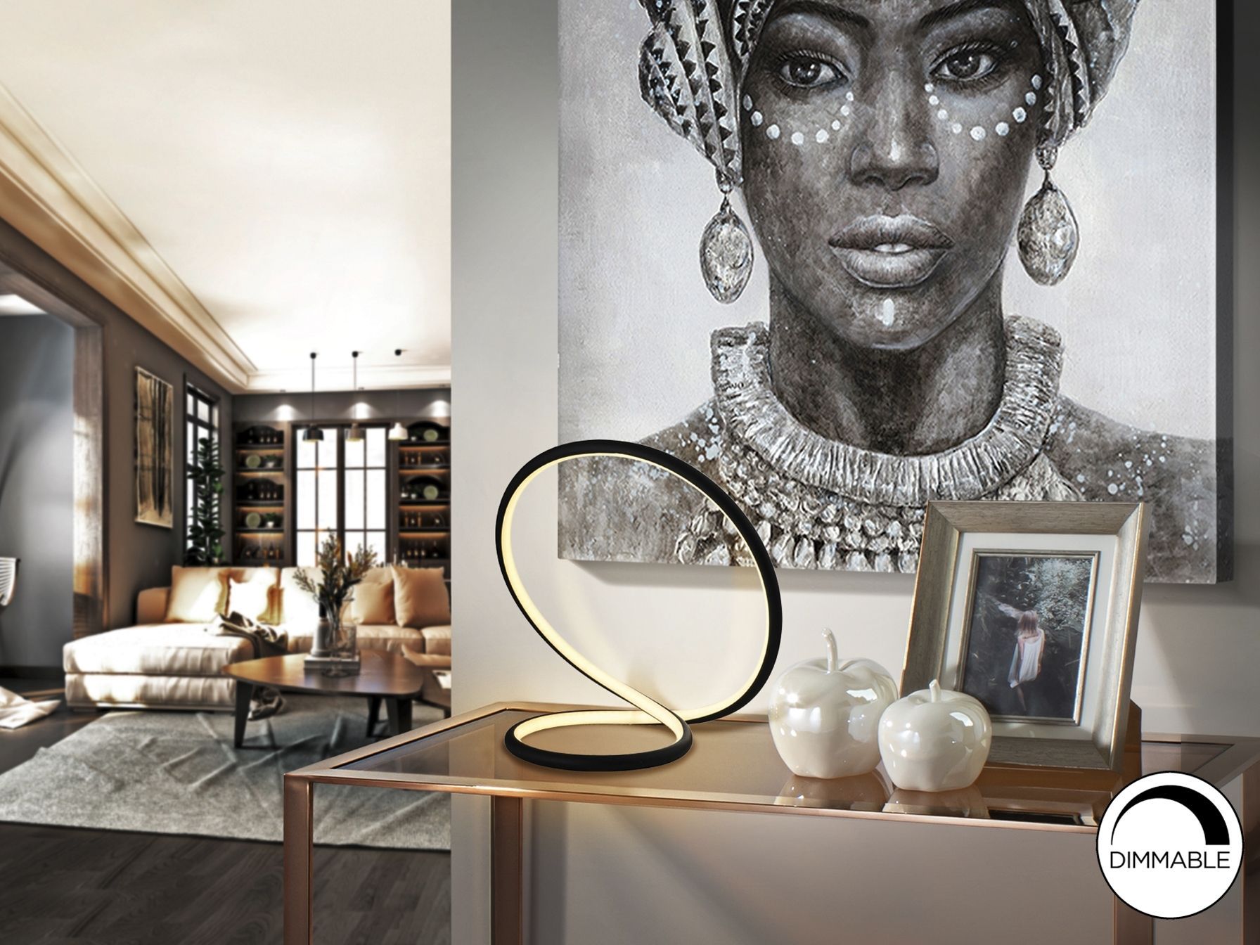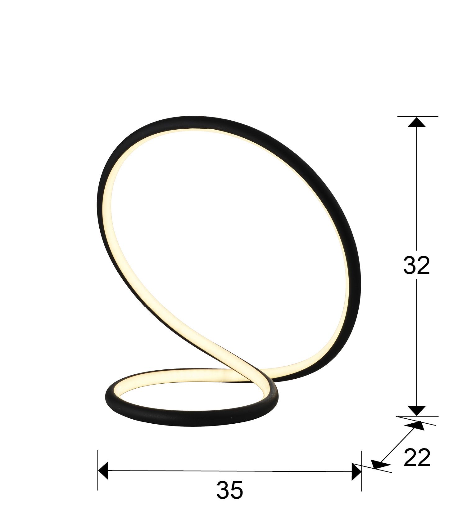 Настольная лампа из металла и алюминия, зернистое матовое чёрное покрытие. Рассеиватель из силикона опалового цвета. 15W LED, 750 Lm, 3000K. Диммируемая.