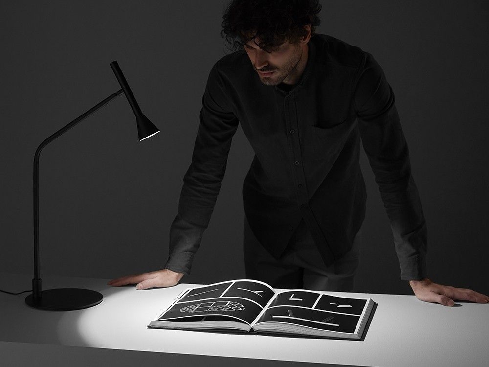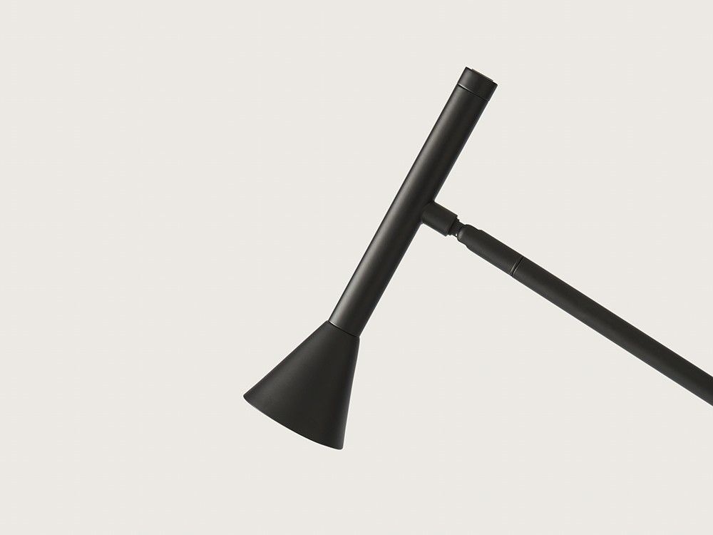 Дизайнерская настольная лампа на гусиной шее со стальной структурой в матово-черном цвете с регулируемым плафоном, сенсорным переключателем и регулятором интенсивности. С светодиодным чипом 5 Вт 3000 К. Длина кабеля 1,5 м. Сборка не требуется.