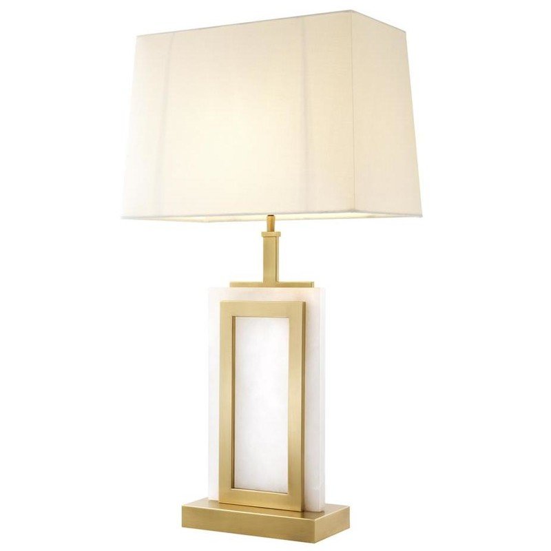 Эта впечатляющая настольная лампа с белым абажуром и скульптурным основанием из матовой латуни и белого алебастра привнесет шик и утонченную эстетику в ваш интерьер.