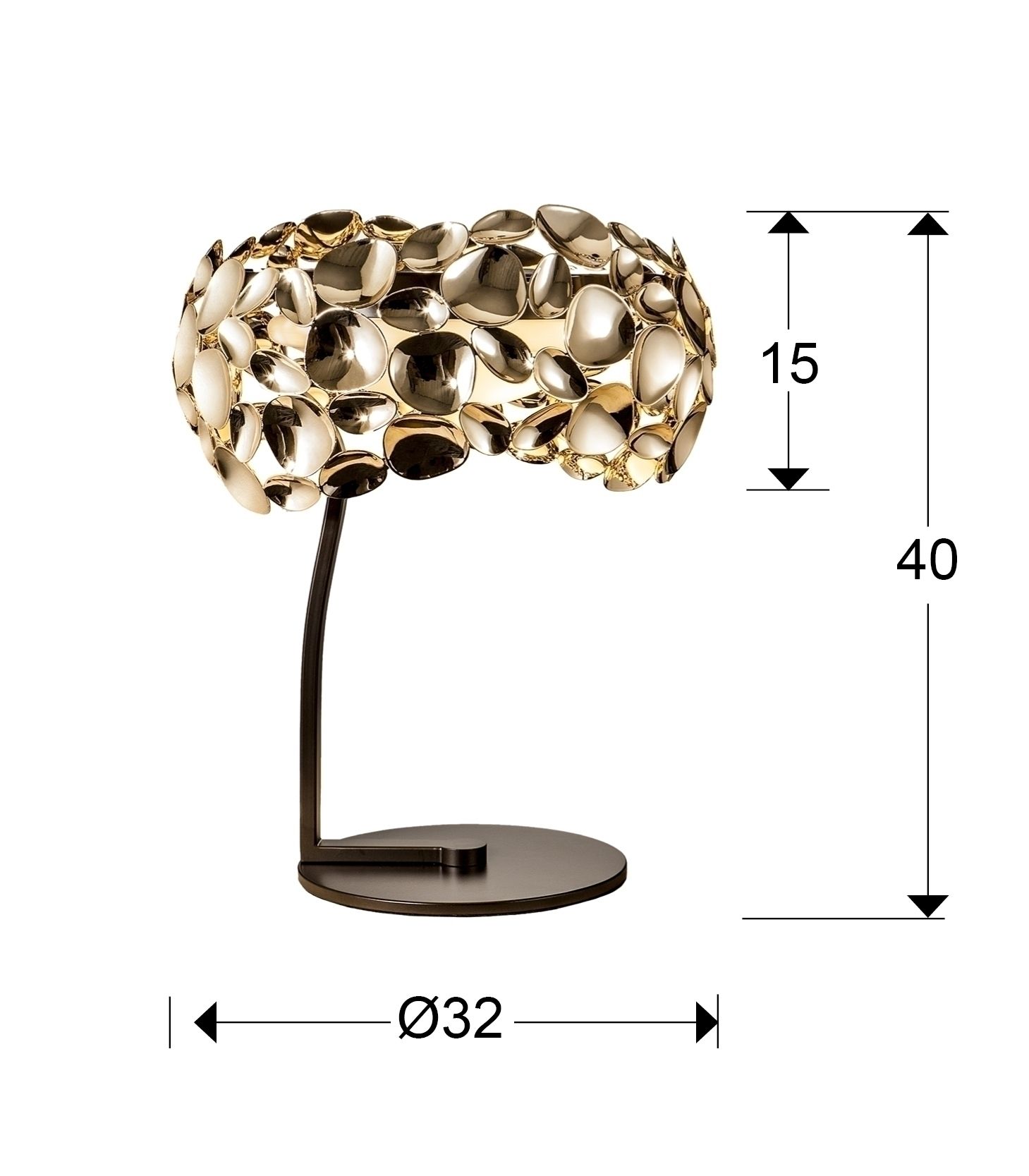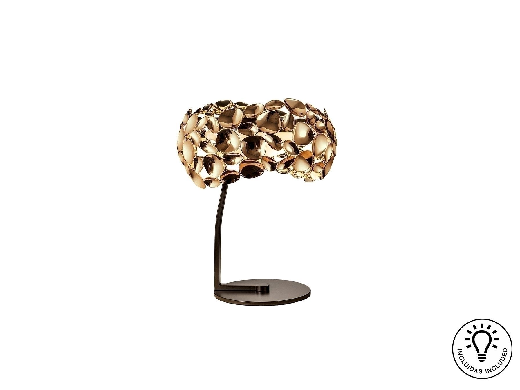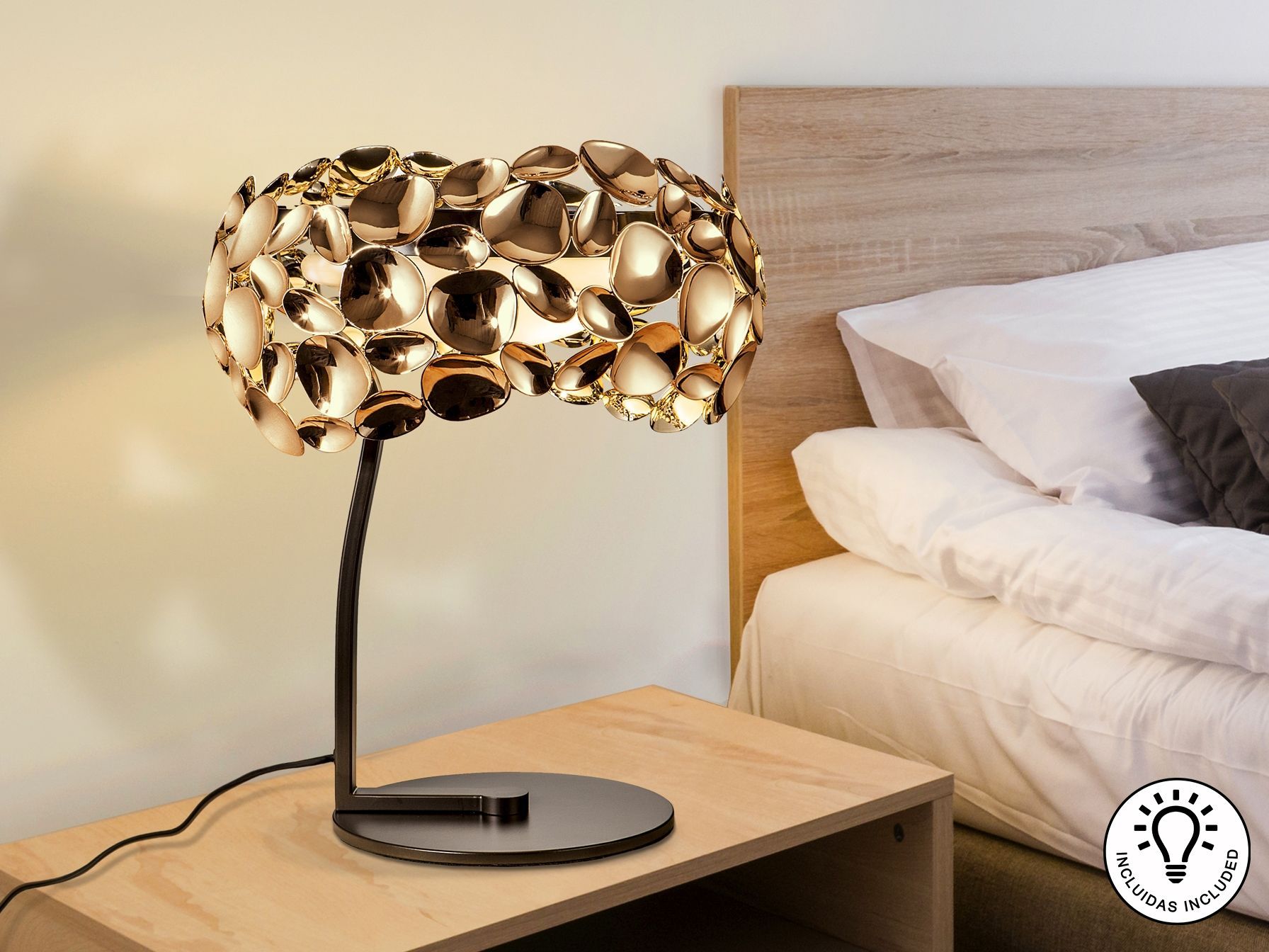 Настольная лампа с 3 лампами, из металла с покрытием "розовое золото" и с тёмно-коричневым покрытием, акриловый рассеиватель внутри.