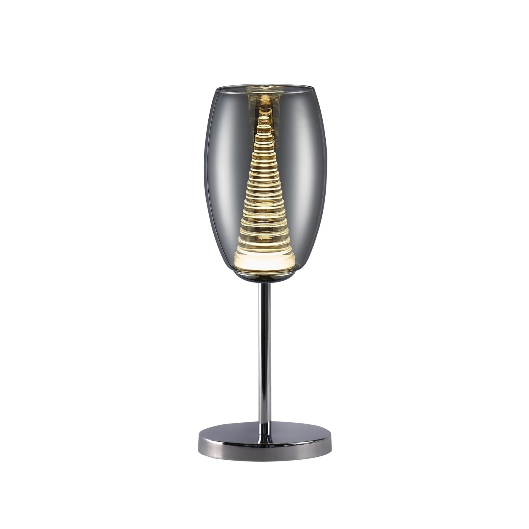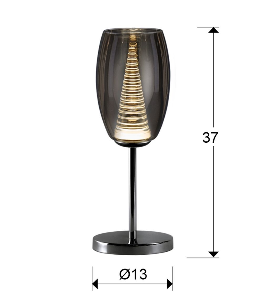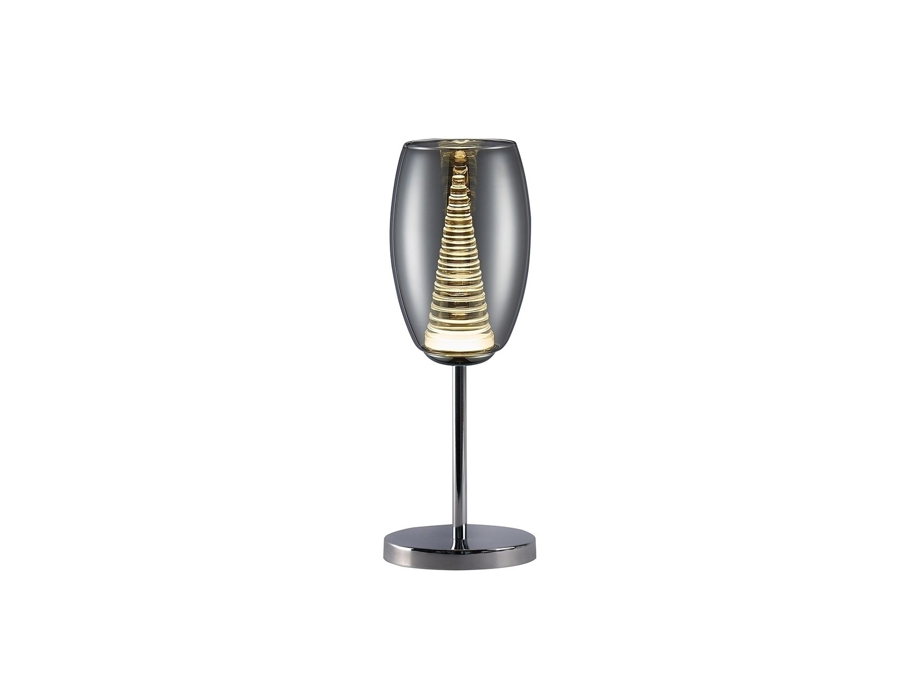 Настольная лампа с 1 лампой LED, из металла с покрытием "хром". Двойной абажур: внешний - из зеркального стекла, внутренний - из прозрачного поликарбоната в форме конуса, с регулируемой высотой, 5W LED. 450 lm 3.000 K.