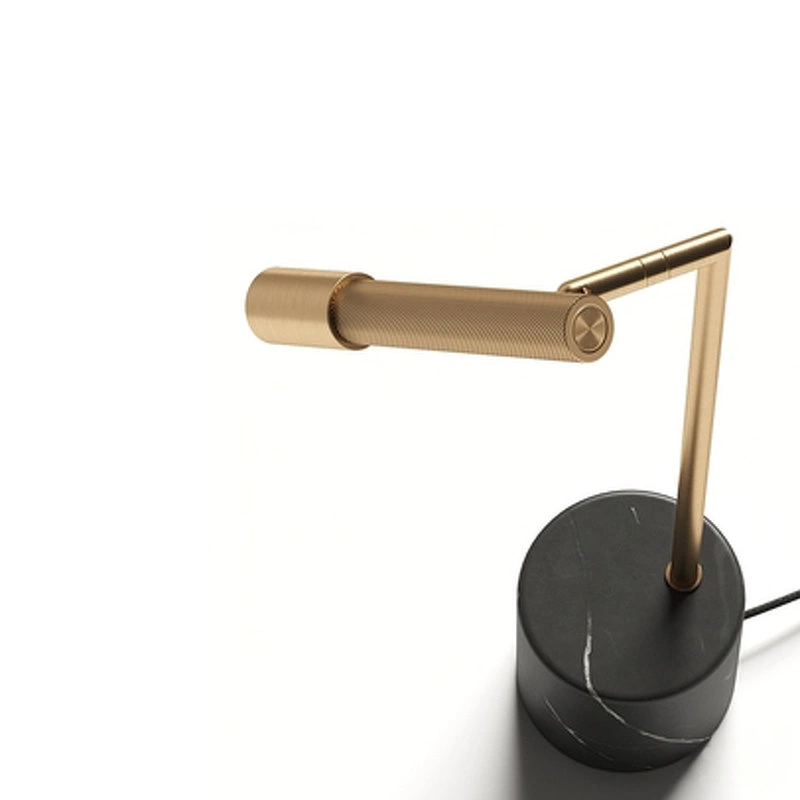 Настольная лампа, выполненная из черного мрамора и металла в матовой золотой или черной отделке.