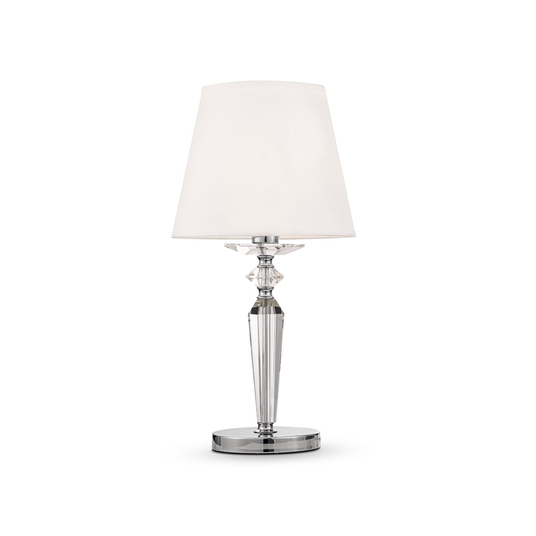 Металлическая арматура с гальваническим покрытием цвета никель. Абажуры из льна, нанесенного на ПВХ. Цвет абажуров – белый. Декор центральной части и рожков – прозрачное стекло. Высота люстр регулируется.