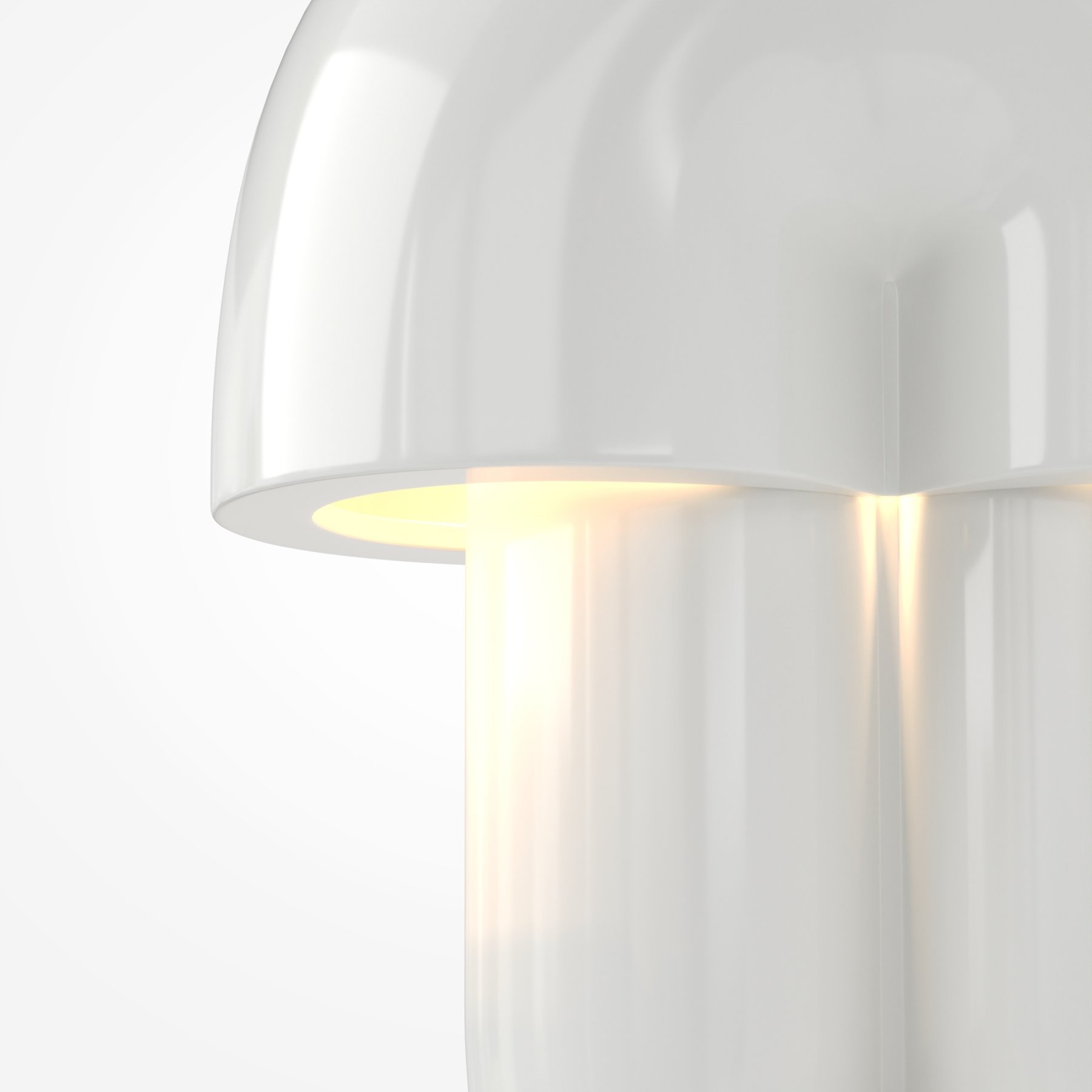 В основе дизайна — силуэт в форме «грибочка». Корпус светильника выполнен из натуральной керамики в трех цветах: шагреневый белый, глянцевые молочно-белый и нежный кашемир. LED-источник (3000К) с высокой световой отдачей (1400 лм) скрыт матовым акриловым рассеивателем и создает мягкий ореол под светильником. Сенсорный металлический шарик позволяет не только включать свет, но и регулировать его яркость. В комплекте предлагается два шара — в цвете сатинированной латуни или глянцевой платины.