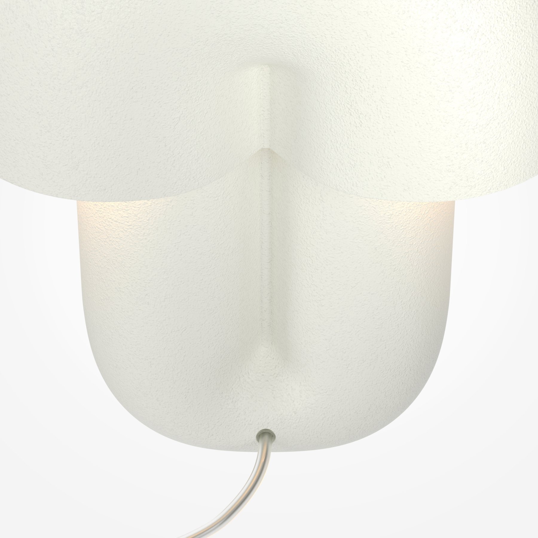 В основе дизайна — силуэт в форме «грибочка». Корпус светильника выполнен из натуральной керамики в трех цветах: шагреневый белый, глянцевые молочно-белый и нежный кашемир. LED-источник (3000К) с высокой световой отдачей (1400 лм) скрыт матовым акриловым рассеивателем и создает мягкий ореол под светильником. Сенсорный металлический шарик позволяет не только включать свет, но и регулировать его яркость. В комплекте предлагается два шара — в цвете сатинированной латуни или глянцевой платины.