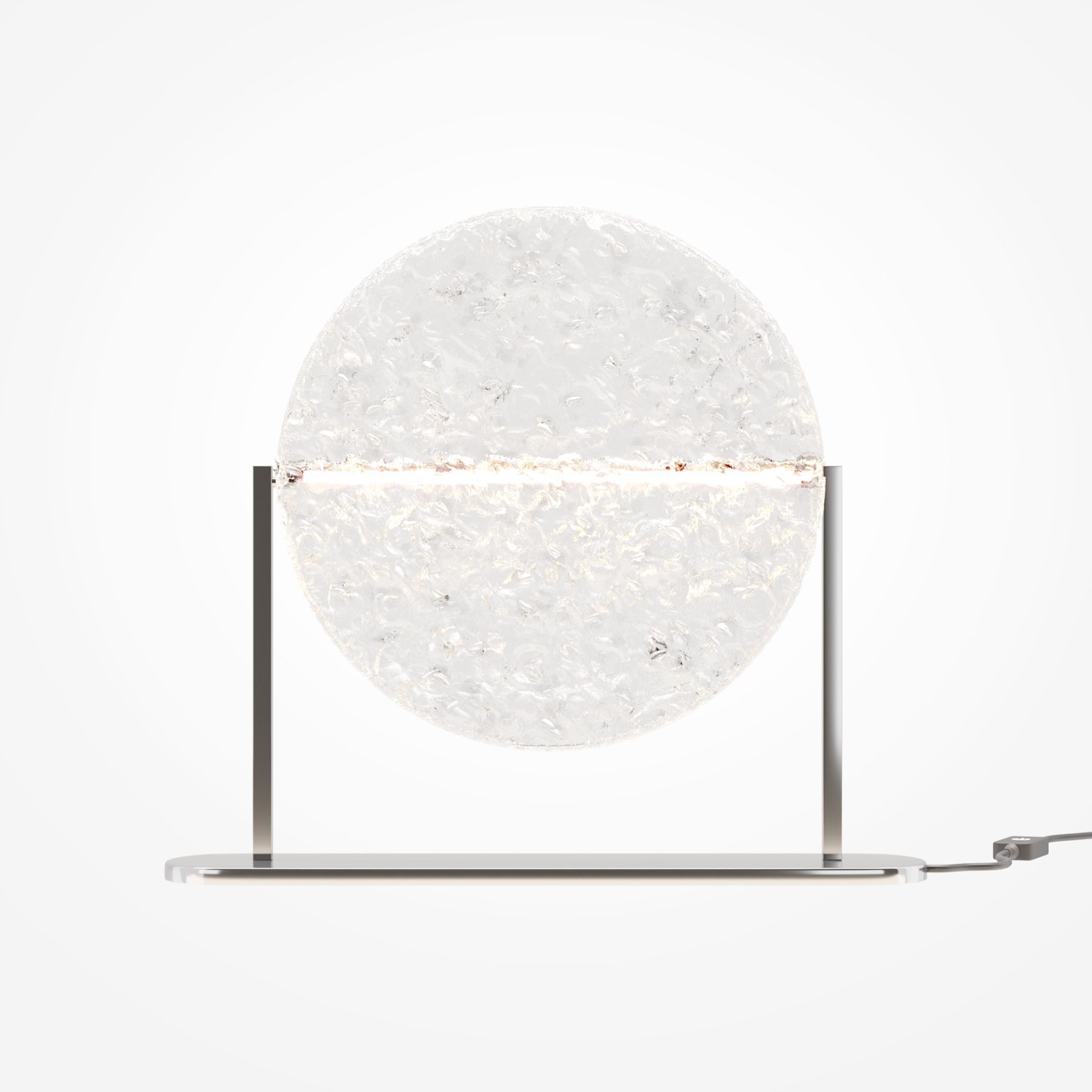 Материал арматуры - металл. Хромированное основание. Поворотный стеклянный рассеиватель, имитирующий лунное отражение на воде. LED-источник света. Настольная лампа и бра в коллекции. Возможность моделирования световых сценариев. Текстурное стекло для мягкого и широкого свечения. Дизайнерская серия, созданная в сотрудничестве с Британской Высшей школой Дизайна.