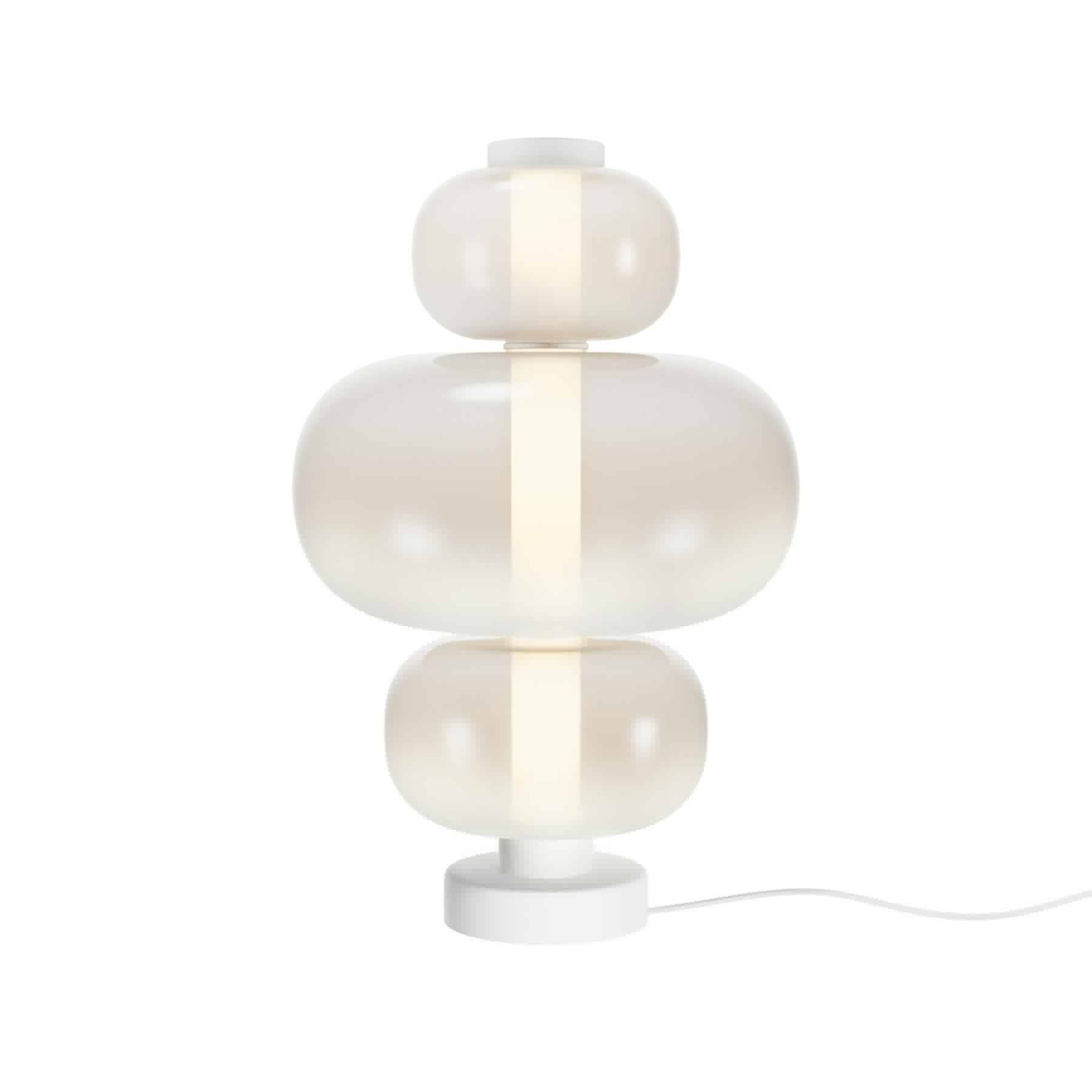 Арматура - металл, цвет - белый, черный. Плафоны окрашены в дымчатый или белый полупрозрачные цвета. В плафон установлен LED-источник света с мощным световым потоком. Цветовая температура — 3000К, угол рассеивания — 120 градусов. Внутренний рассеиватель из полупрозрачного акрила создает мягкое свечение. Предусмотрена функция диммирования: touch-переключатель обеспечивает плавное бесступенчатое управление.