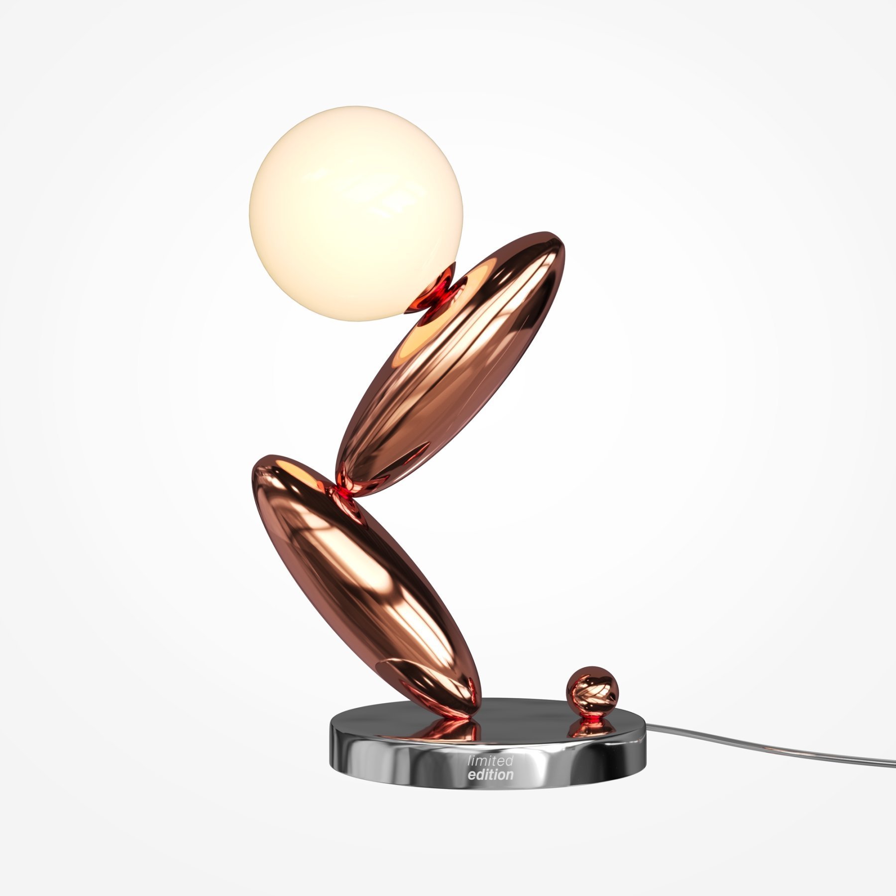 Серия переносит эстетику городских арт-объектов в приватное пространство. Глянцевые холодные оттенки металла (платина и черный никель) сочетаются с молочно-белым стеклом плафона. Сенсорный металлический шар регулирует яркость LED-источника (3000К). Зеркальная поверхность металла деликатно переотражает свет. В серии также представлена лимитированная версия в глянцевом медном цвете с платиновыми акцентами. Настольный светильник становится амбициозным акцентом в современных интерьерах.