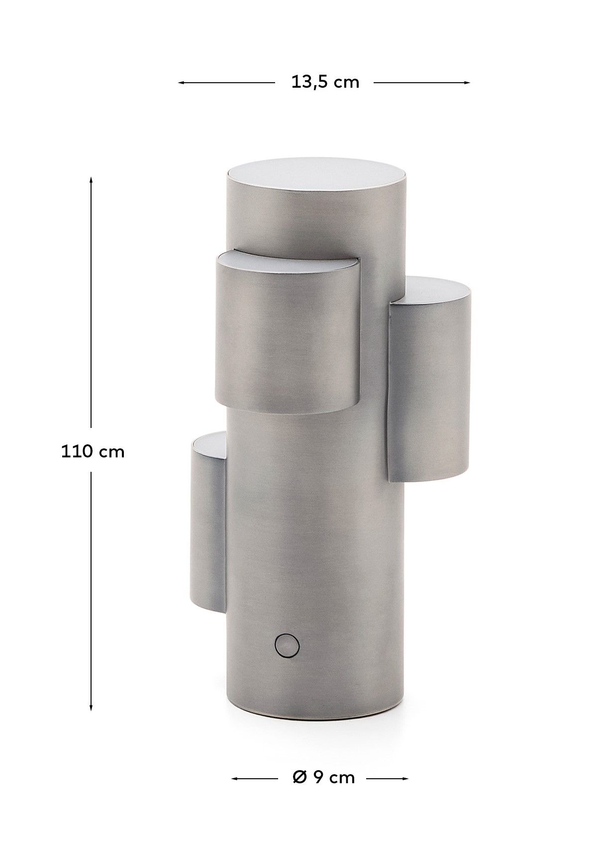 Переносная светодиодная настольная лампа выделяется своим скульптурным и современным дизайном, характеризующимся геометрическими и трубчатыми линиями. Матовая отделка металлической поверхности подчеркивает элегантность изделия и создает мягкие световые блики, особенно при естественном освещении. Благодаря светодиодной технологии мощностью 2,7 Вт и цветовой температуре 3000 К эта лампа обеспечивает теплое и уютное освещение, идеально подходящее для создания расслабляющей атмосферы как в жилых, так и в рабочих помещениях.