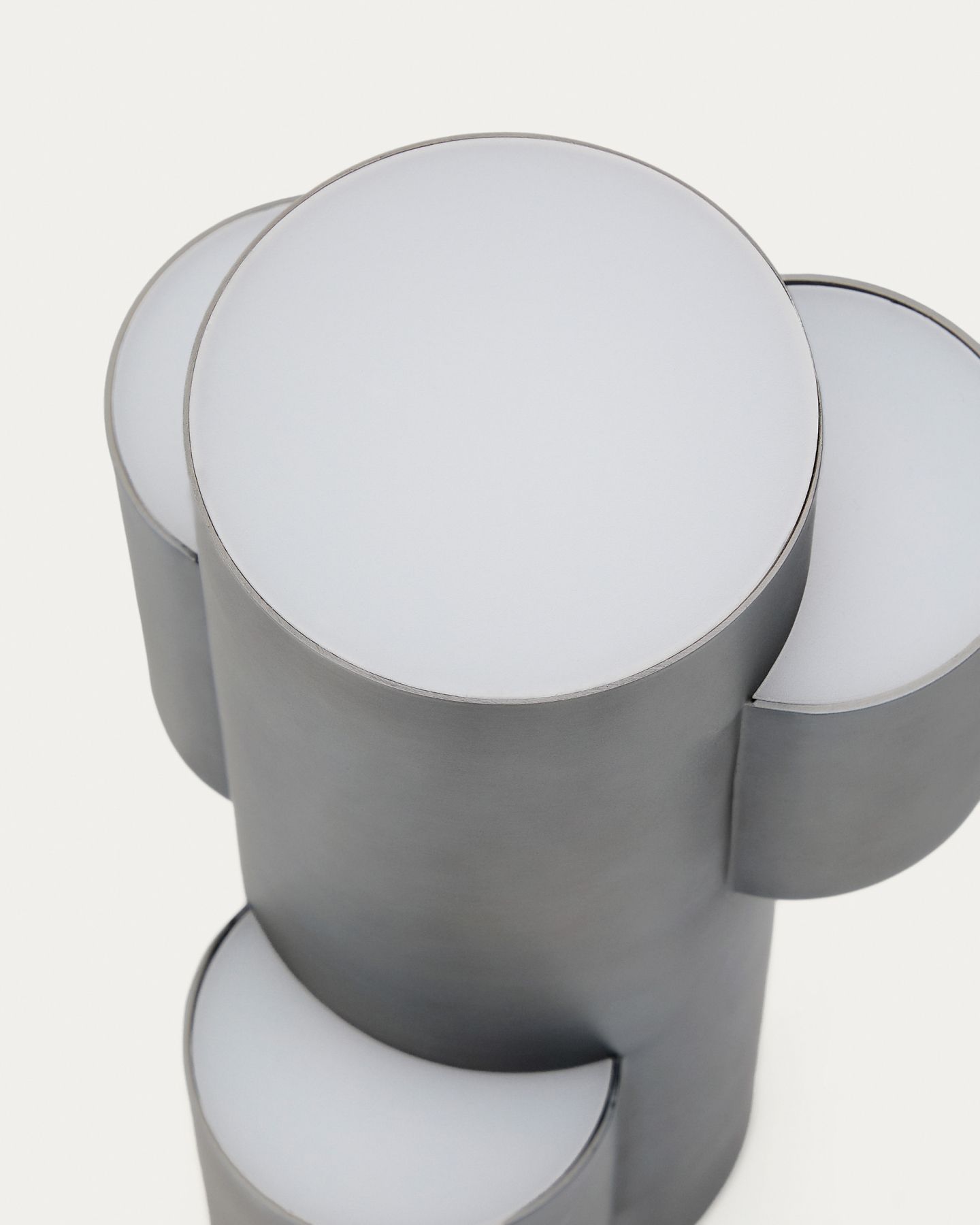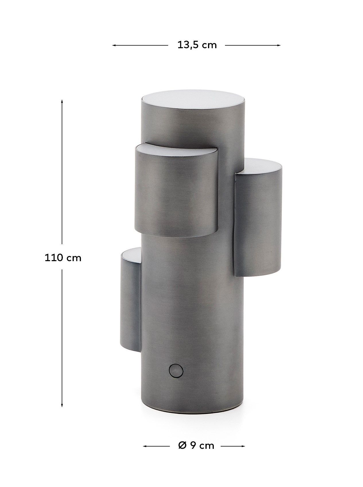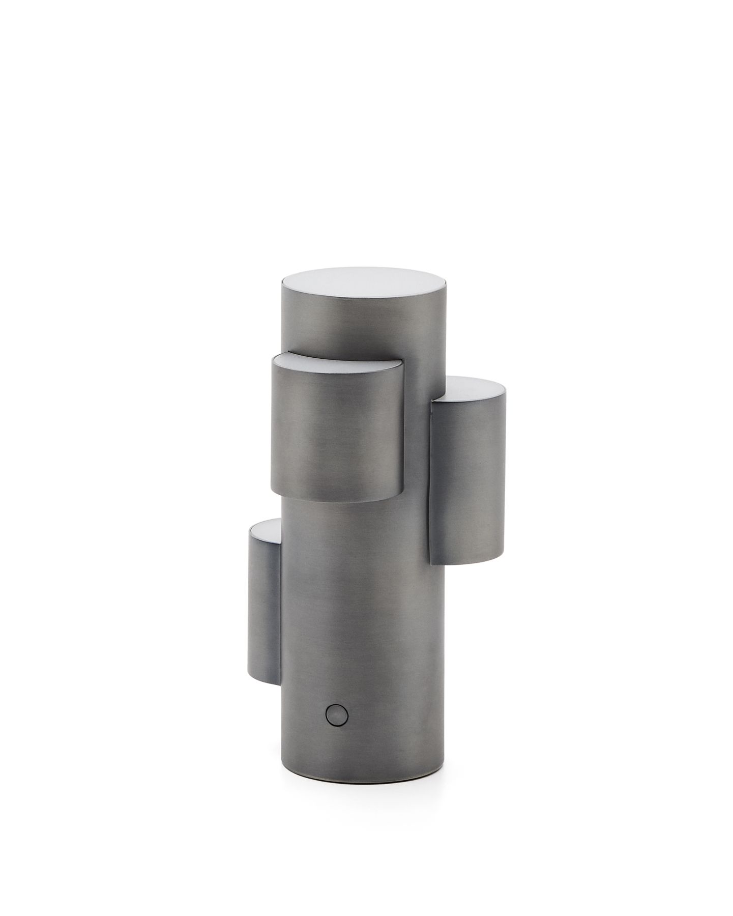 Переносная светодиодная настольная лампа выделяется своим скульптурным и современным дизайном, характеризующимся геометрическими и трубчатыми линиями. Матовая отделка металлической поверхности подчеркивает элегантность изделия и создает мягкие световые блики, особенно при естественном освещении. Благодаря светодиодной технологии мощностью 2,7 Вт и цветовой температуре 3000 К эта лампа обеспечивает теплое и уютное освещение, идеально подходящее для создания расслабляющей атмосферы как в жилых, так и в рабочих помещениях.