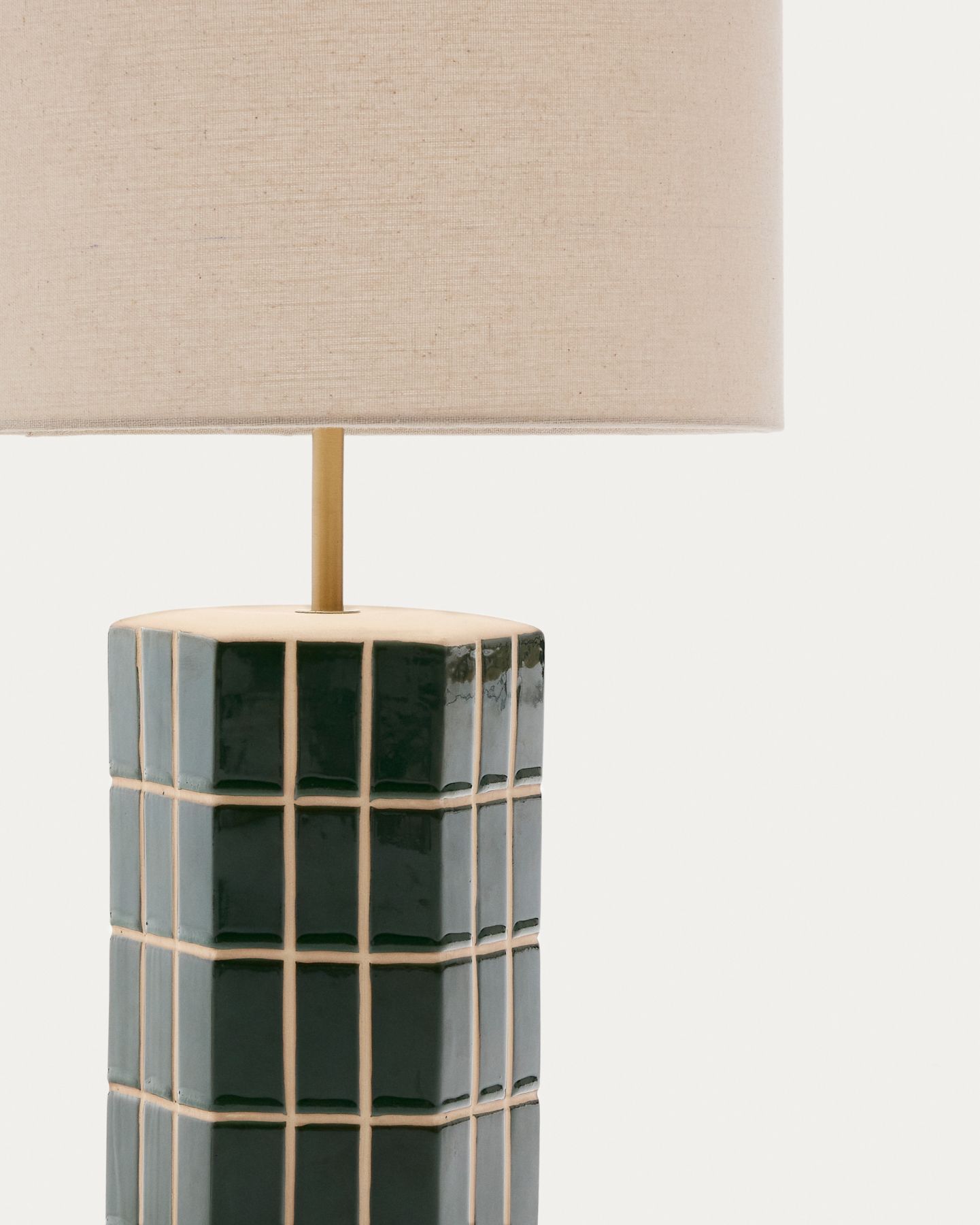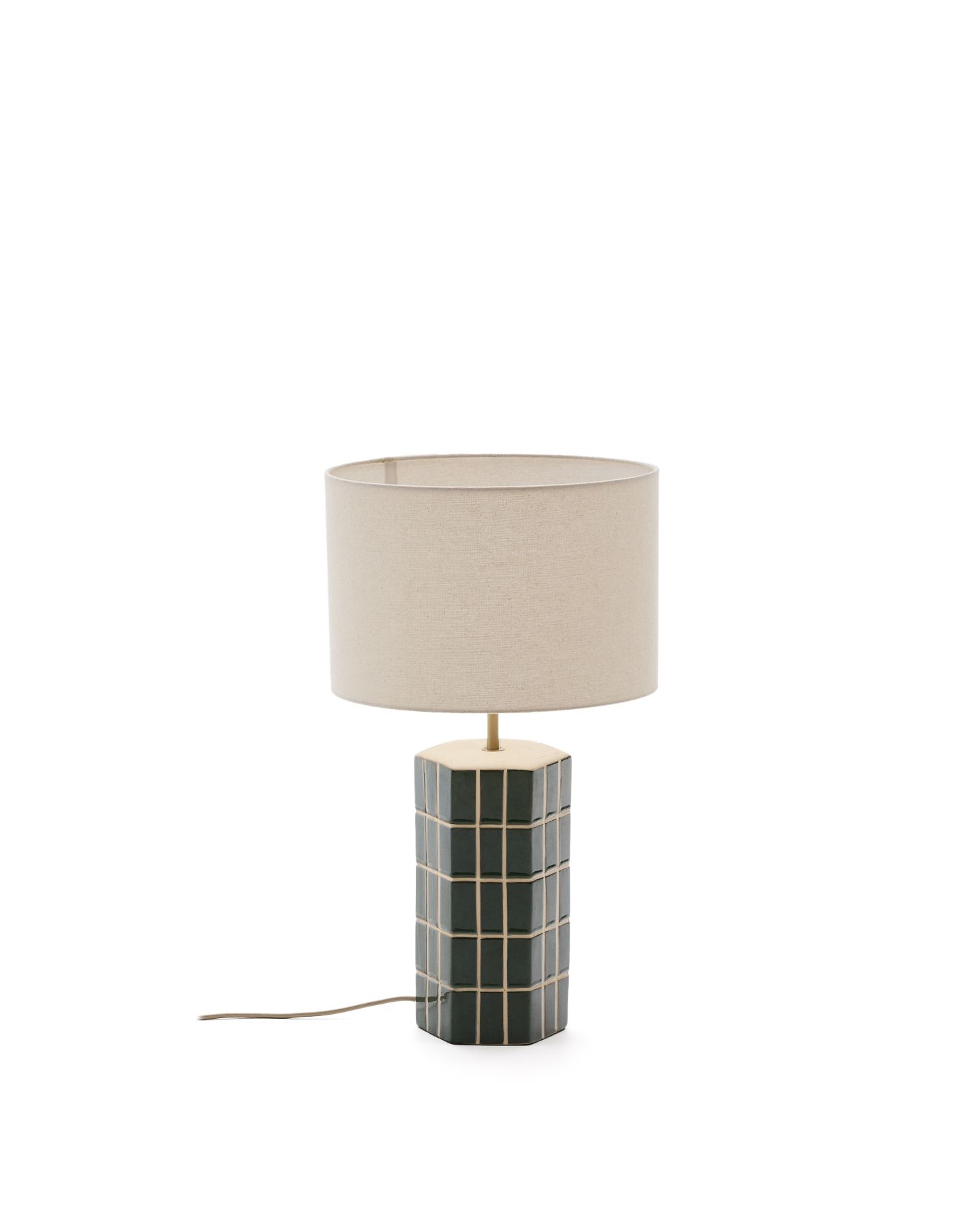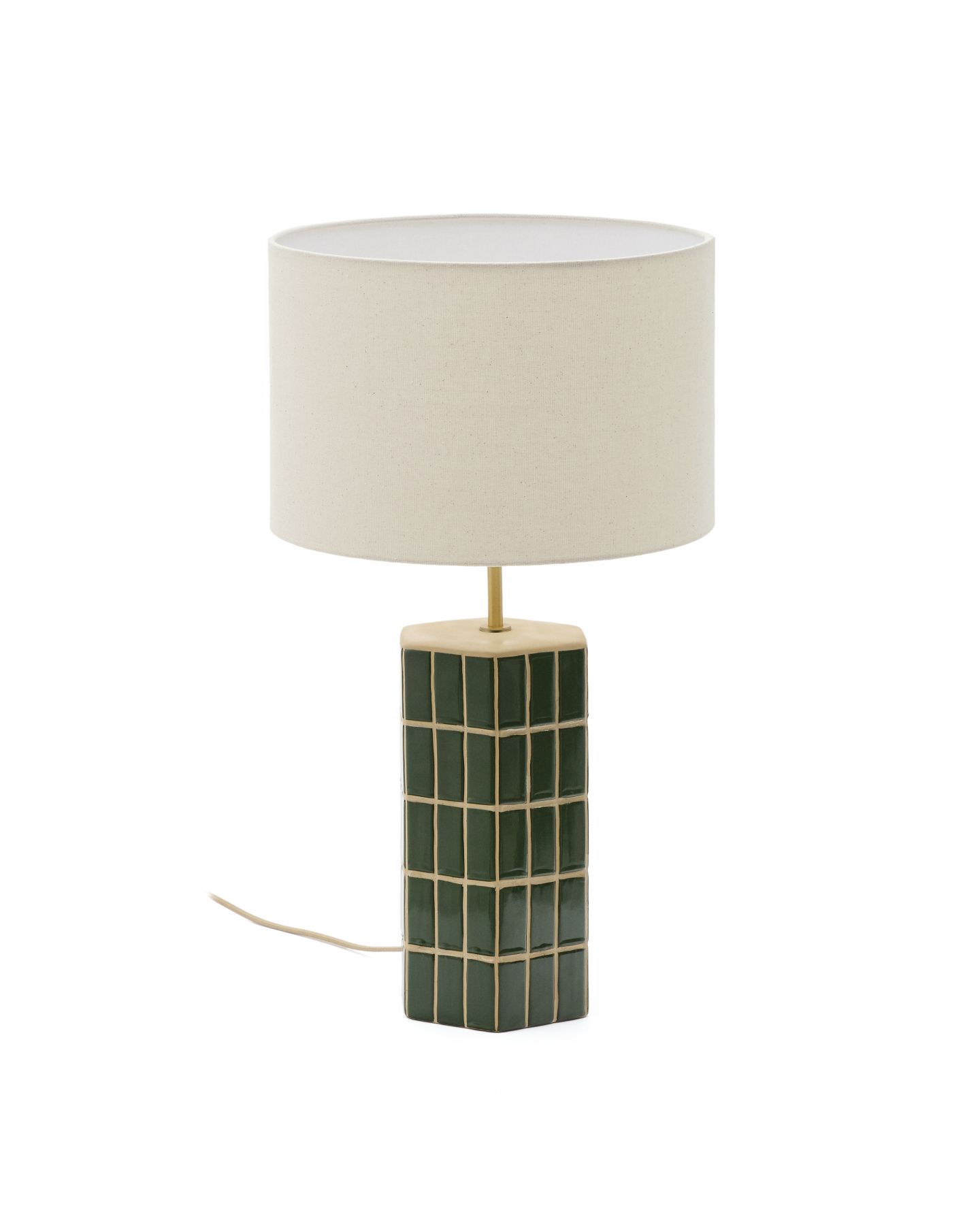 Абажур из ткани цвета экрю создает элегантный контраст с яркостью зеленого основания, обеспечивая теплое и мягкое прикосновение, которое обеспечивает приятное и уютное освещение. Совместимо с лампочками E27 мощностью до 40 Вт.