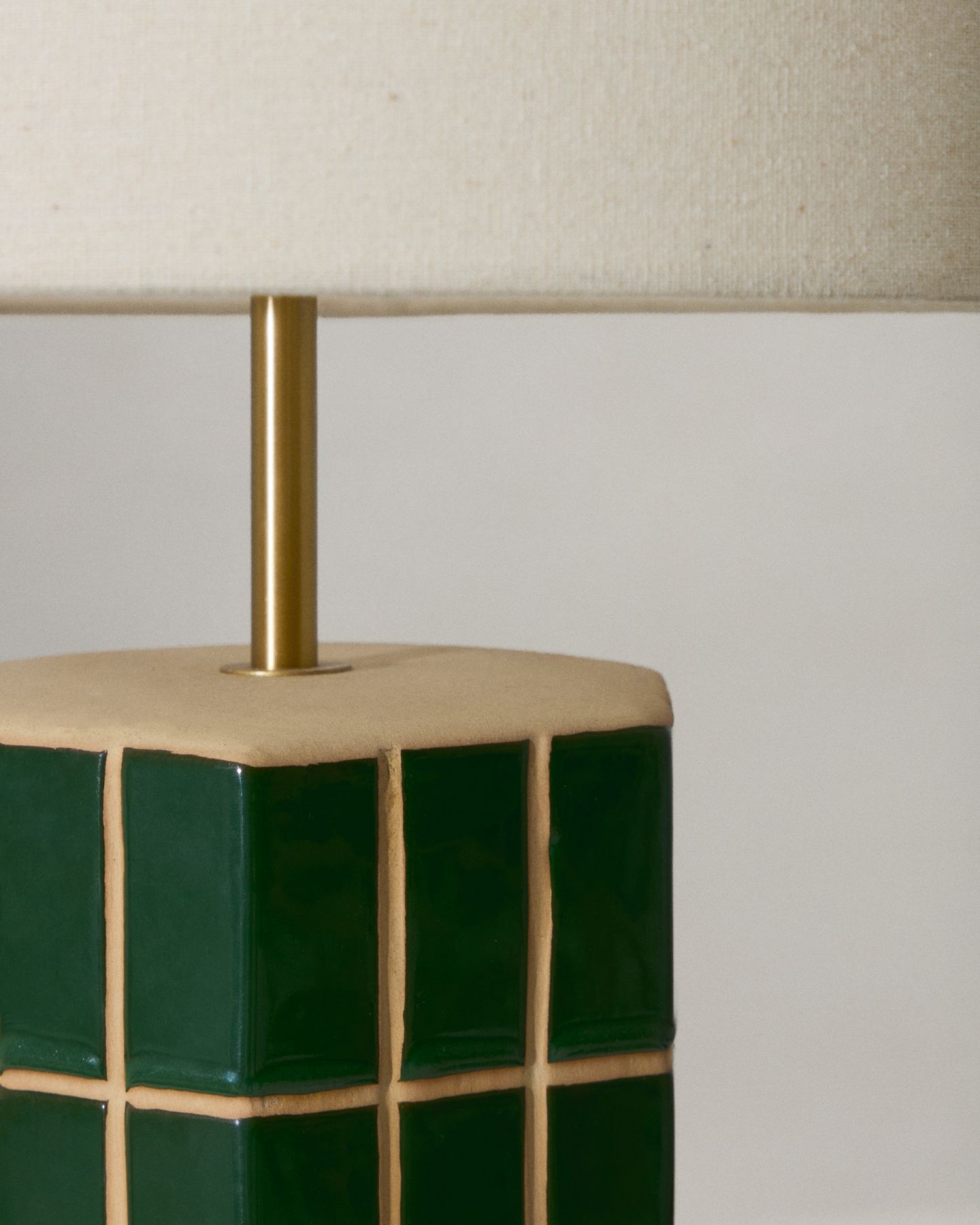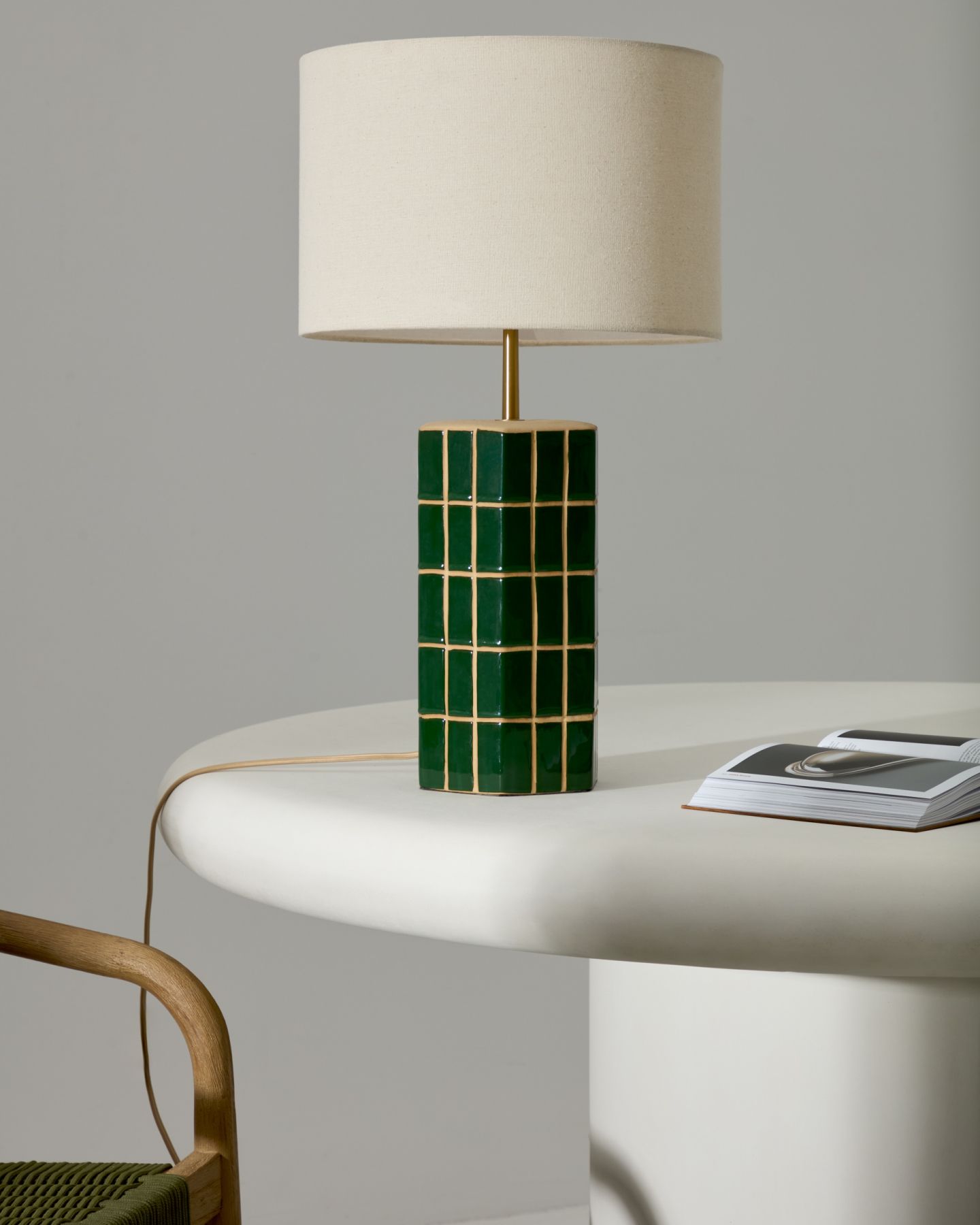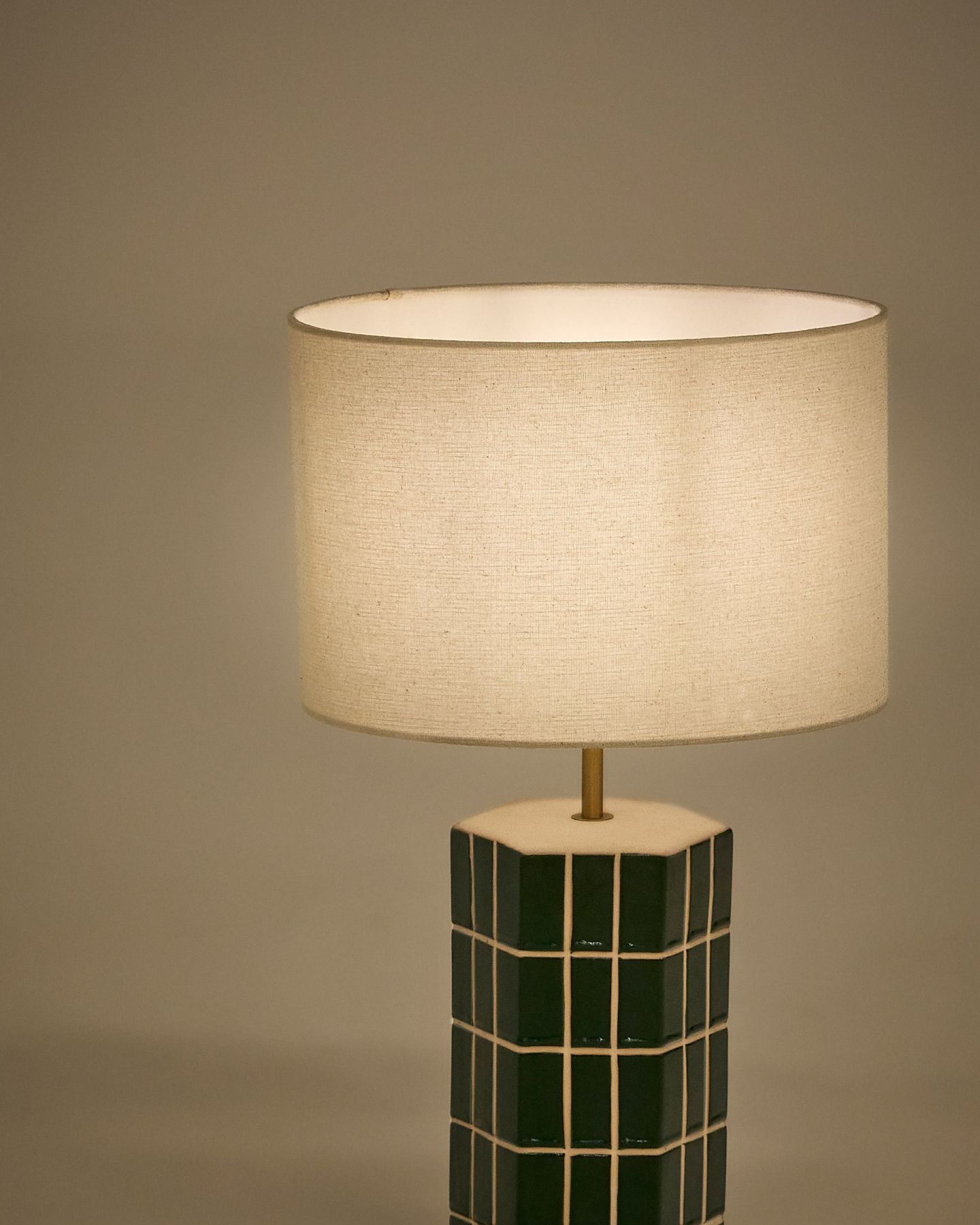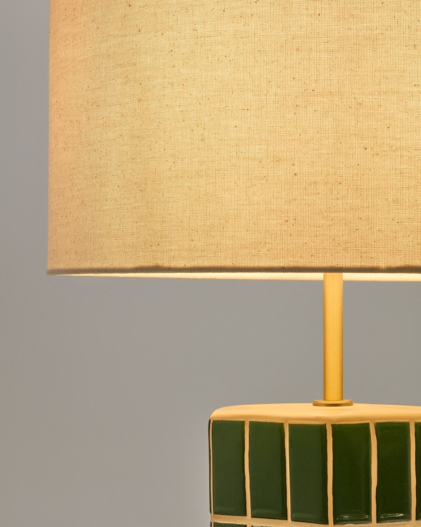 Абажур из ткани цвета экрю создает элегантный контраст с яркостью зеленого основания, обеспечивая теплое и мягкое прикосновение, которое обеспечивает приятное и уютное освещение. Совместимо с лампочками E27 мощностью до 40 Вт.