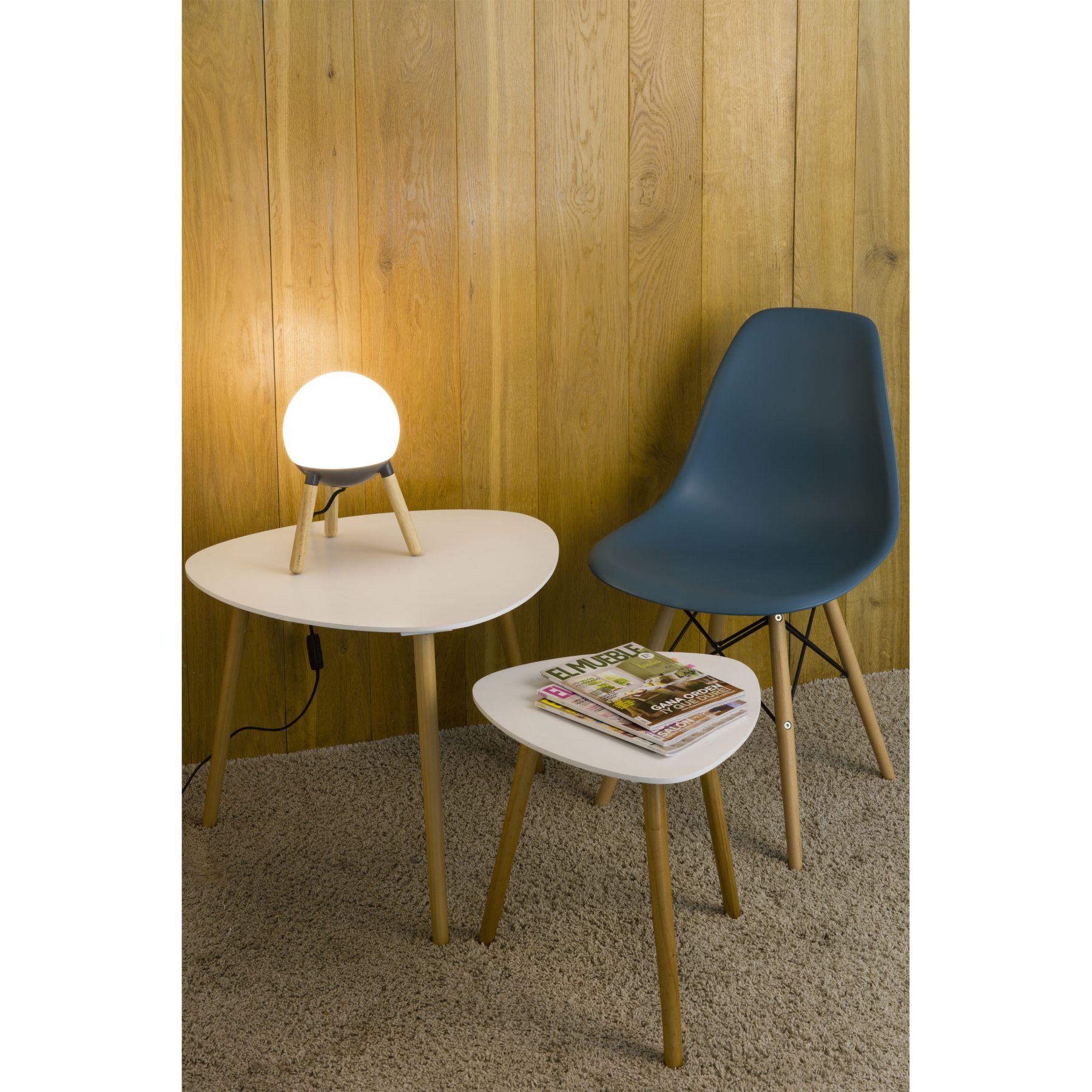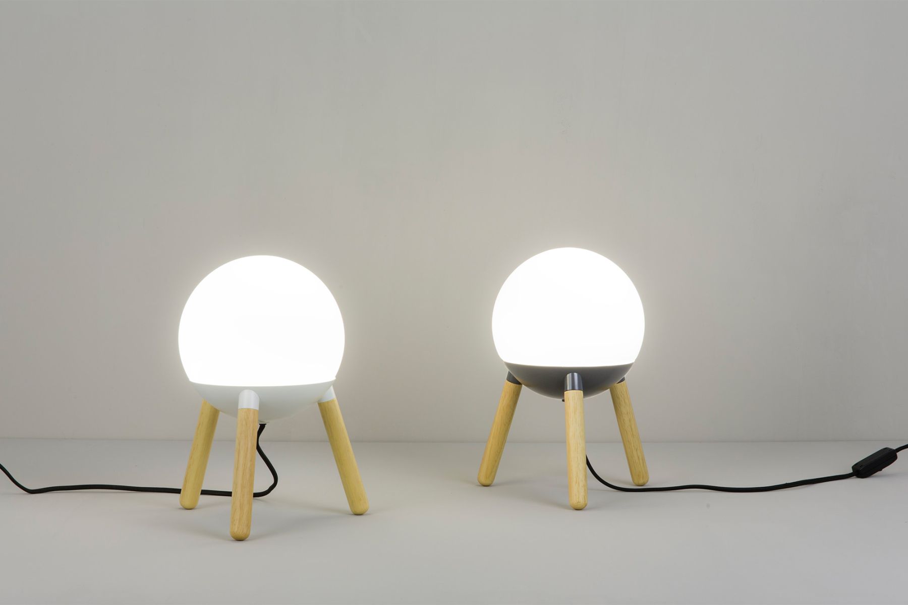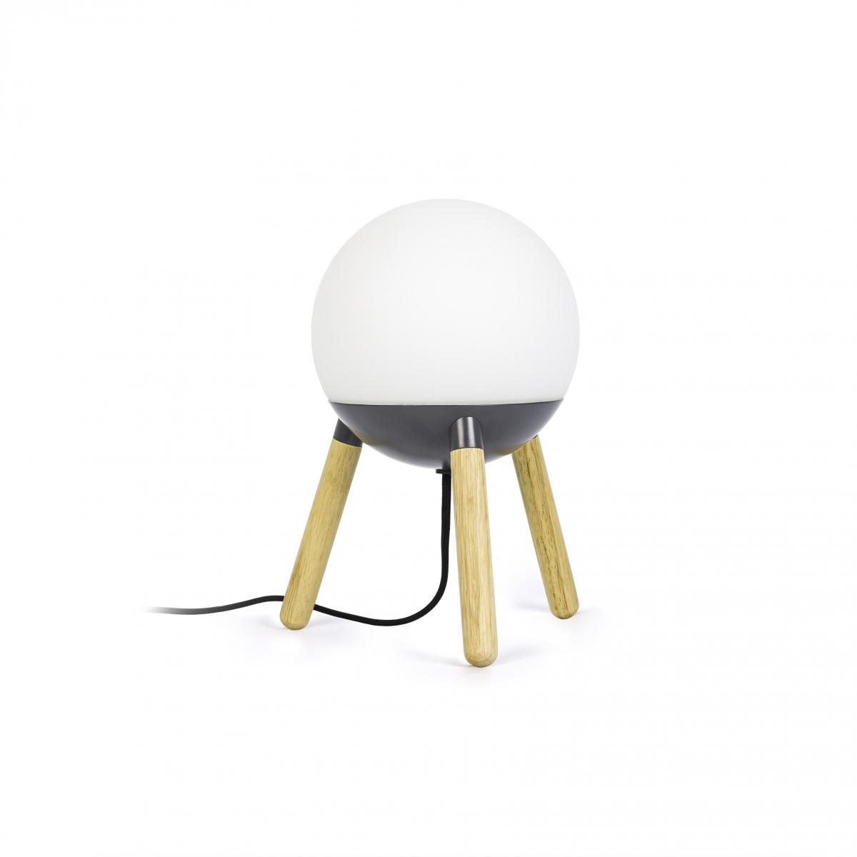 Настольная лампа серого цвета от Nahtrang с деревянной структурой и стеклянным рассеивателем. Материал и свет, проходящий через диффузор, принесут в ваш дом тепло и уют.