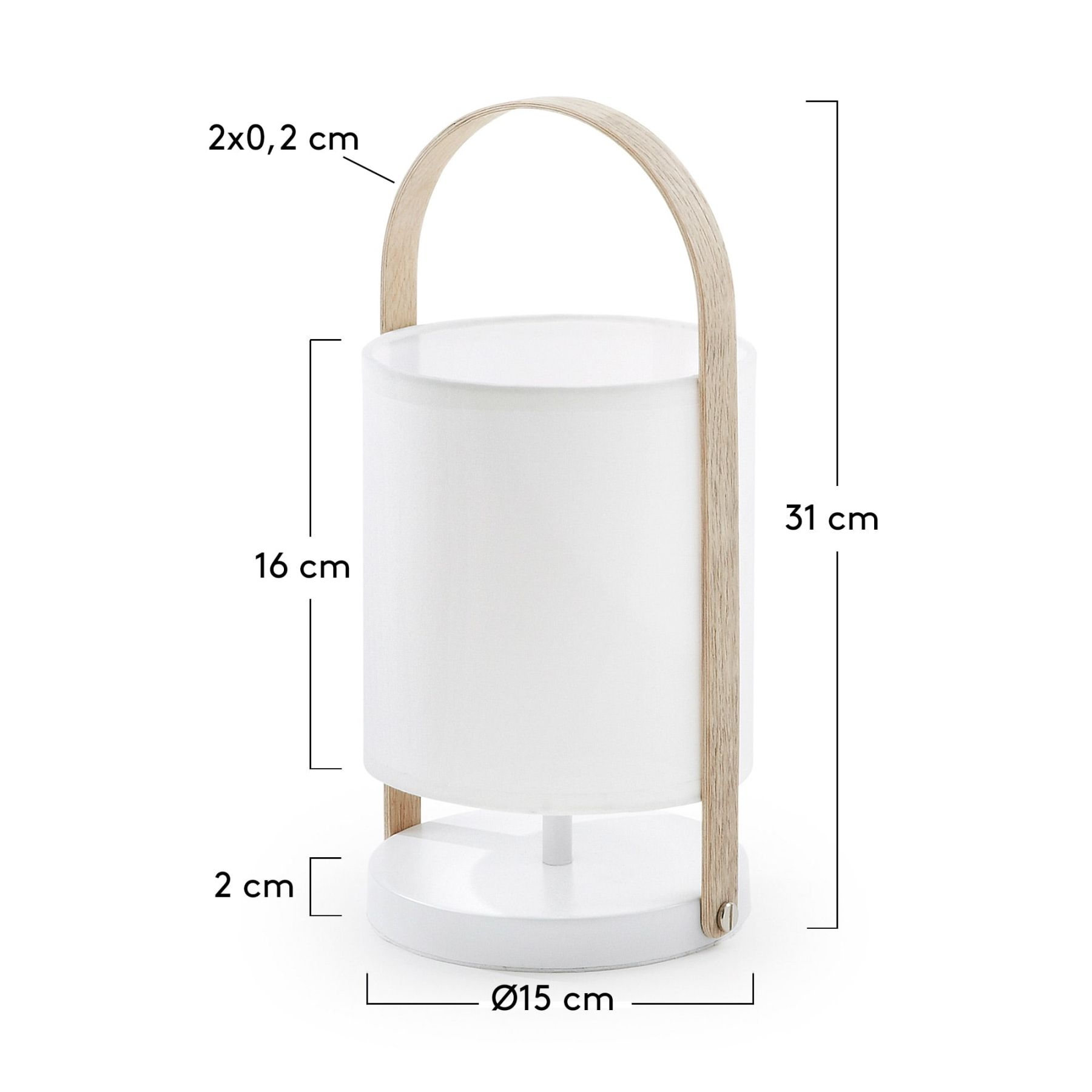 Настольная лампа Zayla J01 от фабрики La Forma (ex Julia Grup) – дизайн под любую поверхность. Настольная лампа Zayla J01 – совершенно универсальный предмет интерьера. Его исполнение уверенно заявляет о том, что поставить лампу можно куда угодно. Будь это стол или полка, тумбочка или даже пол. Везде Zayla будет уместна. Экспериментировать будет просто. Лампа имеет форму цилиндра. Она выполнена из стали с белым порошковым покрытием и тканевого чехла из 100% хлопка. Высота абажура – 16 см. Опора-стойка также металлическая, окрашена в белый цвет. Диаметр основания – 15 см, высота – 2 см. Вдоль всего изделия проходит деревянная реечная ручка (бук) в натуральном цвете. Ее ширина – 2 см. Для лампы производитель рекомендует использовать энергосберегающий источник света следующими характеристиками: цоколь – Е14, мощность – 25 Вт, класс энергопотребления – Е-А++, максимальная энергоэффективность – A++. Питание осуществляется от розетки через кабель с пластиковым покрытием. Его длина – 175 см. Ручной выключатель находится на расстоянии 50 см. Размеры лампы: высота – 32 см, ширина – 15 см, глубина – 15 см. Вес – 0,7 кг. Сборка не требуется.