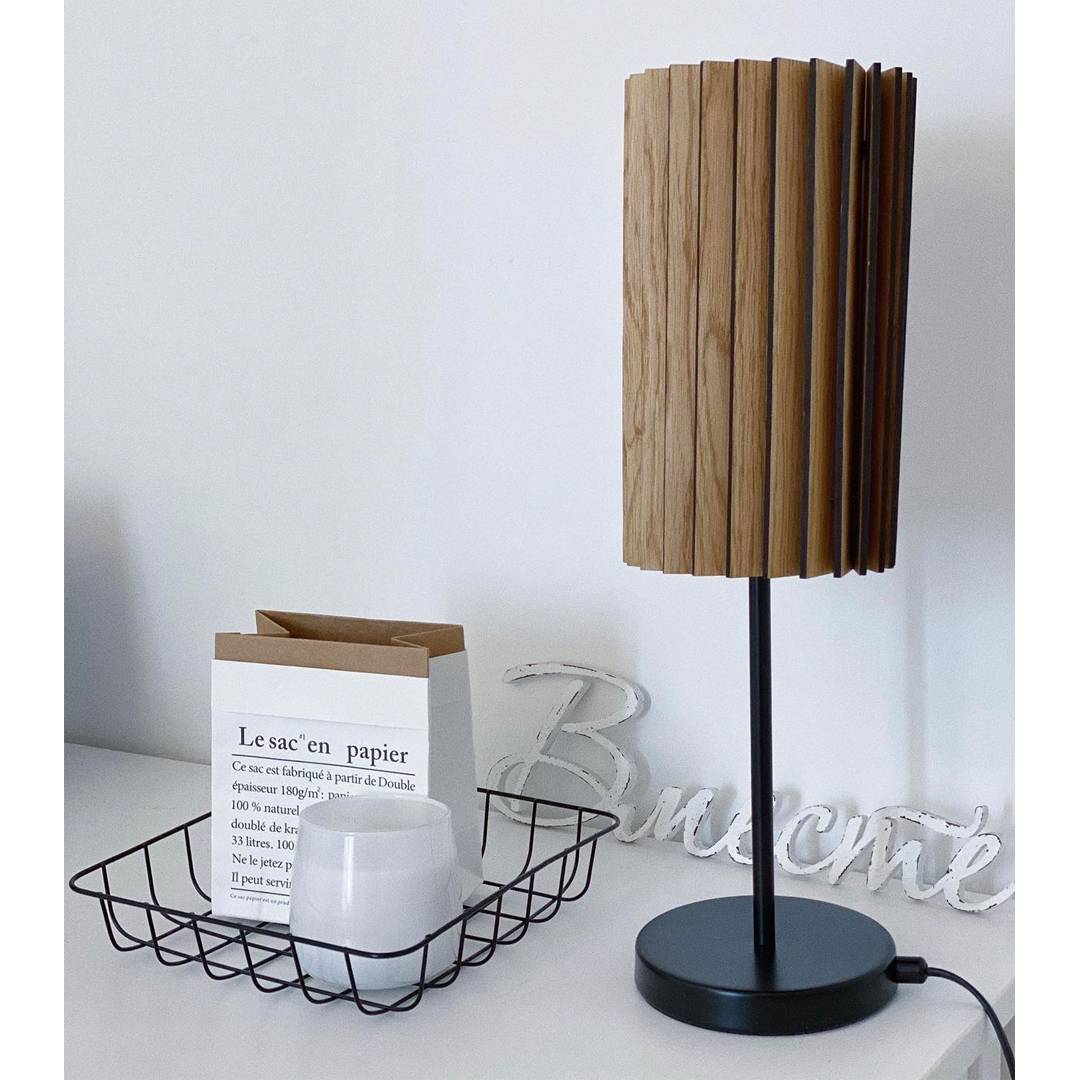Настольная лампа Rotor подарит уютное освещение и дополнит вашу коллекцию светильников с геометричными формами и натуральным деревом.