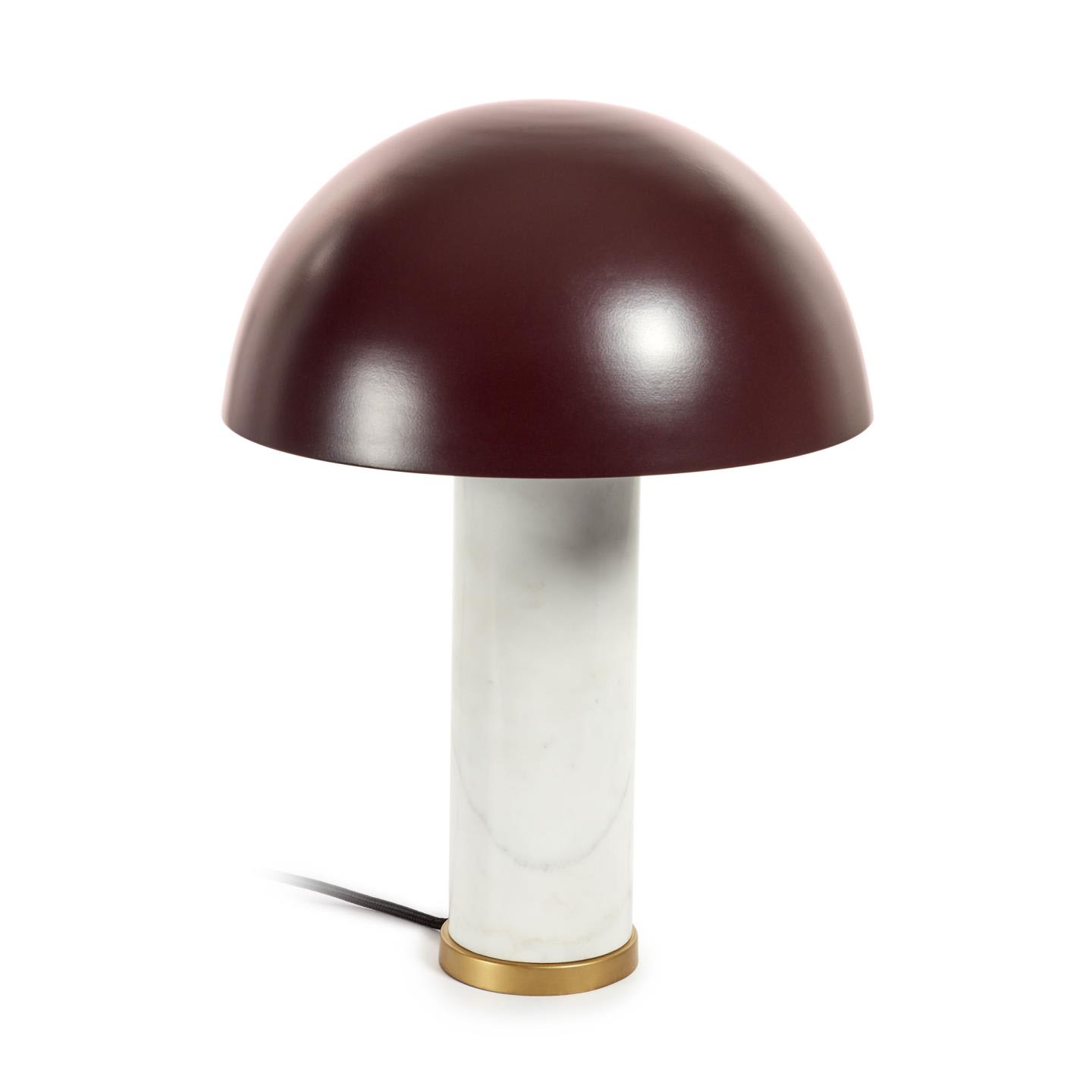 Настольная лампа из белого мрамора и металла, окрашенная в коричневый цвет. Изготовлена из натуральных материалов, поэтому каждый из них уникален, со своими оттенками и текстурами. Декоративные детали из латуни.