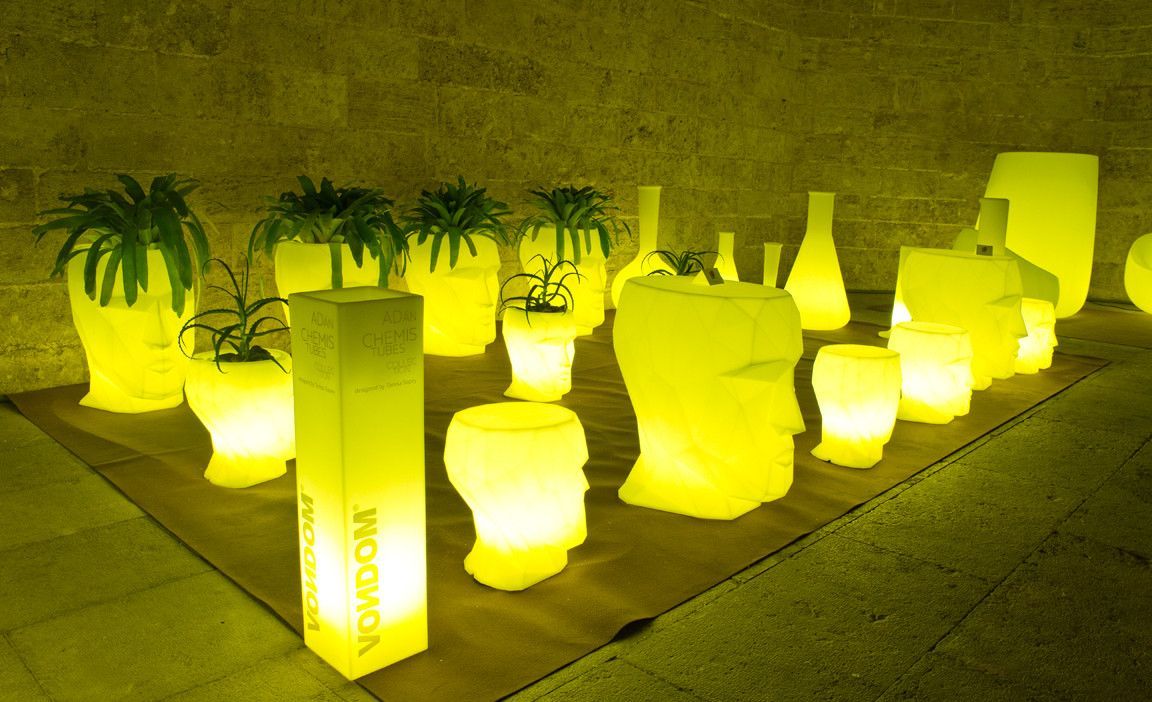 Коллекция Adan разнообразна — кроме табурета в нее включены такие же головы-кашпо и головы-столики. Цветовая палитра включает 15 оттенков.