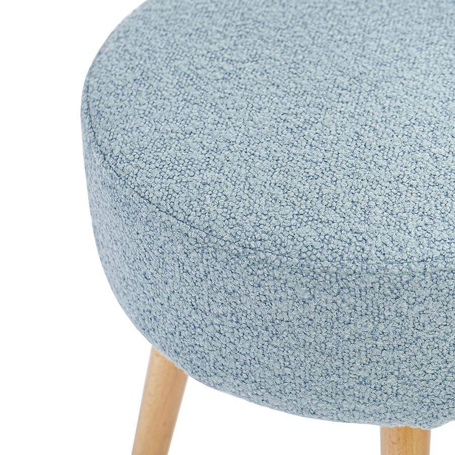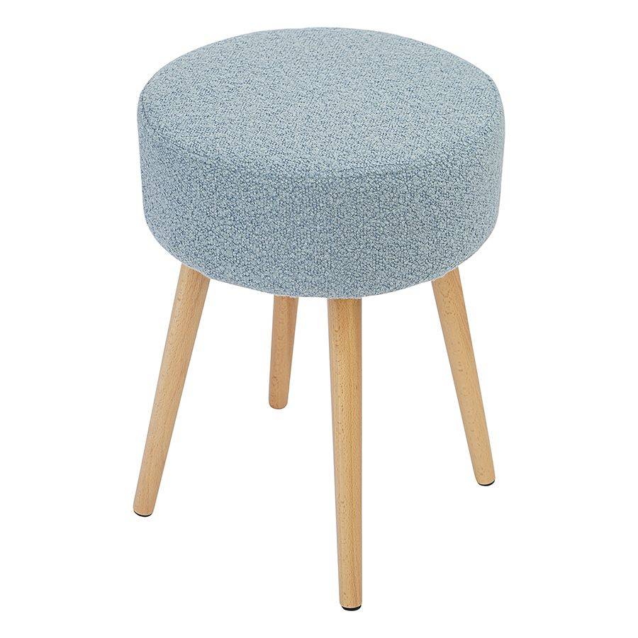Мягкое сиденье с обивкой из буклированной ткани и деревянные ножки делают мебель уютной и оригинальной. Такое сочетание материалов легко комбинируется практически с любой современной отделкой и декором. Ткань приятная на ощупь, при этом прочная и долговечная. Табурет также может использоваться как дополнительное место для сидения в комнате или в качестве подставки для ног во время отдыха на кресле или диване.