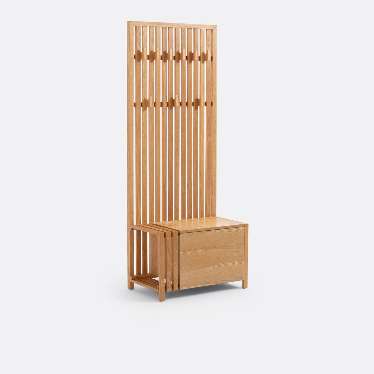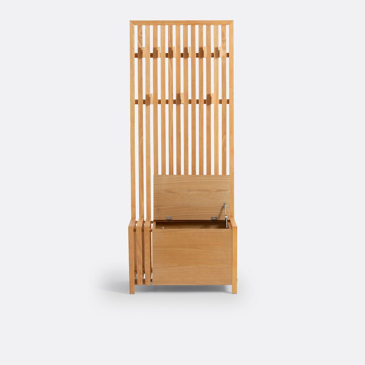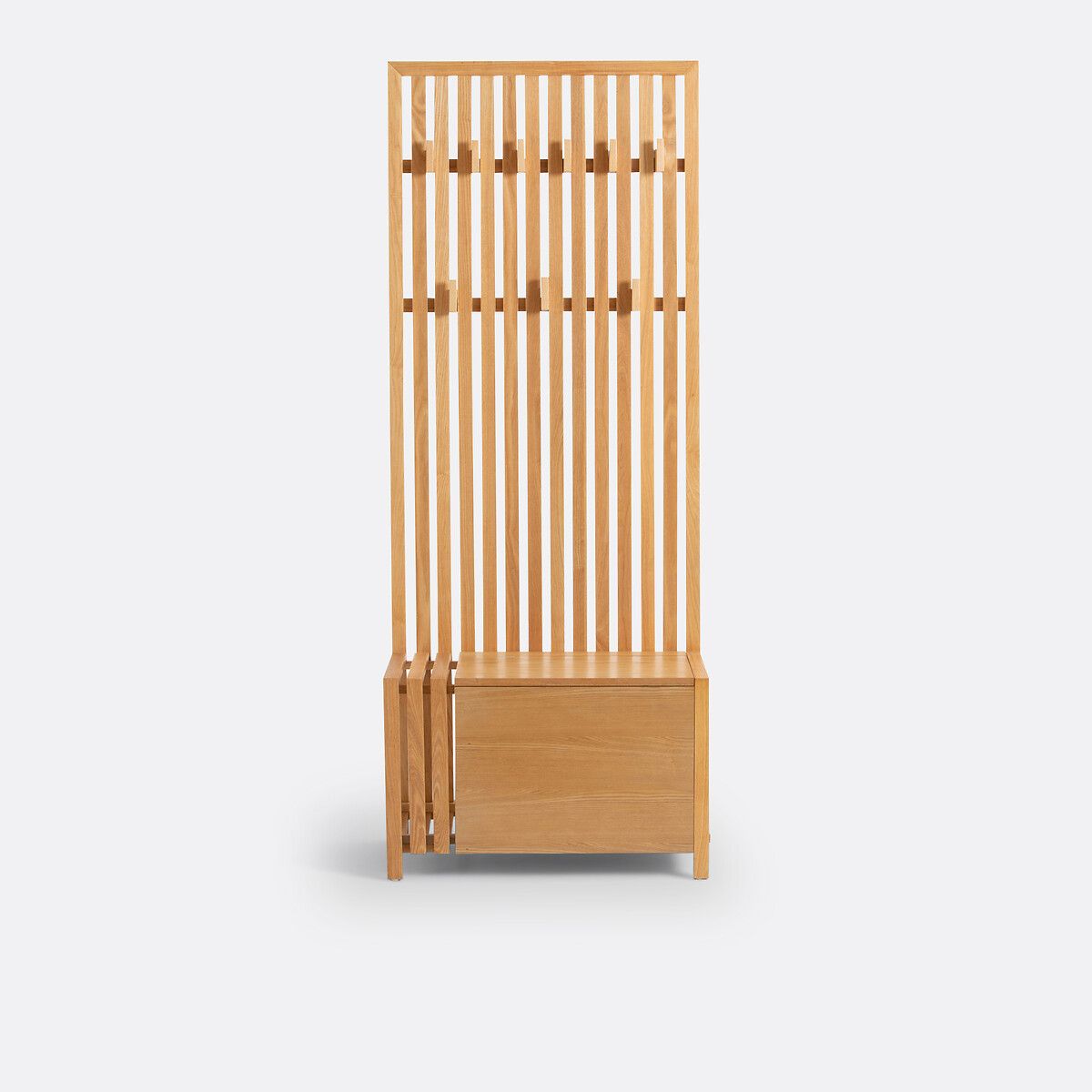 — Скамья для прихожей с ящиком, перегородкой из досок, которая может разграничивать комнату, 9 съемных крючков в 2 рядах.