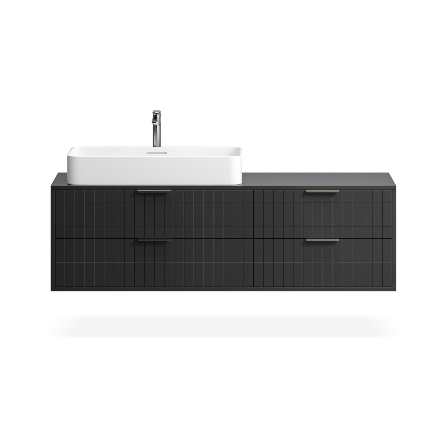 Компактные модели подвесных тумб с четырьмя выдвижными ящиками гармонично сочетаются с линейкой накладных раковин большинства производителей.