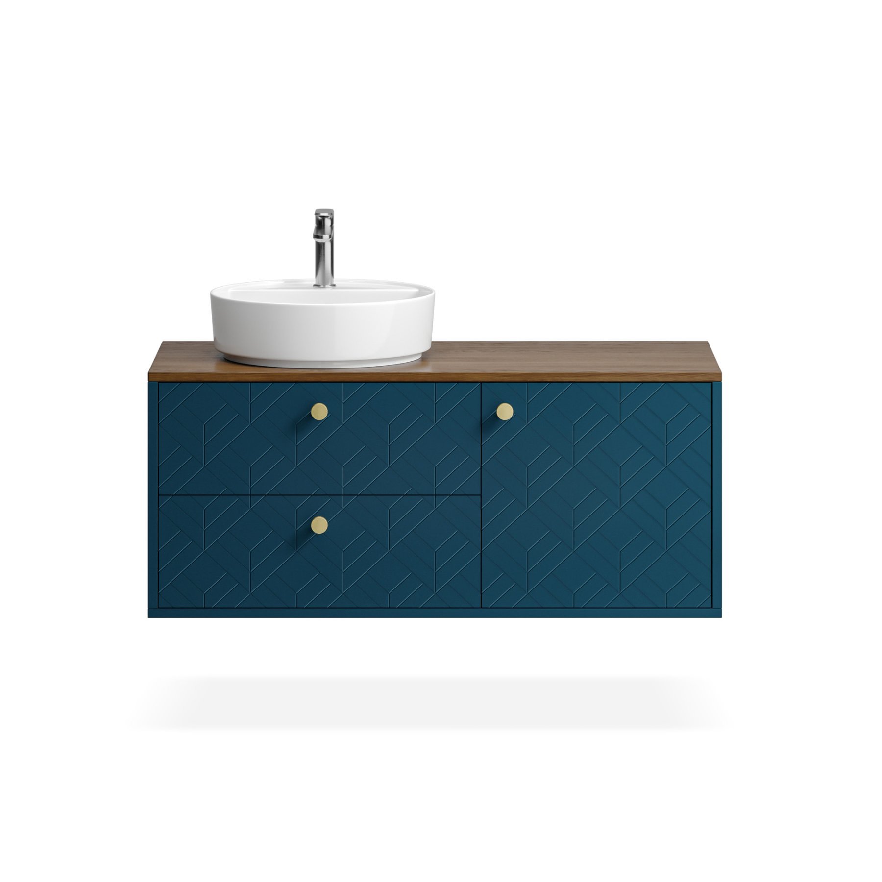 Компактные модели подвесных тумб с двумя выдвижными ящиками и секцией с полками гармонично сочетаются с линейкой накладных раковин большинства производителей.