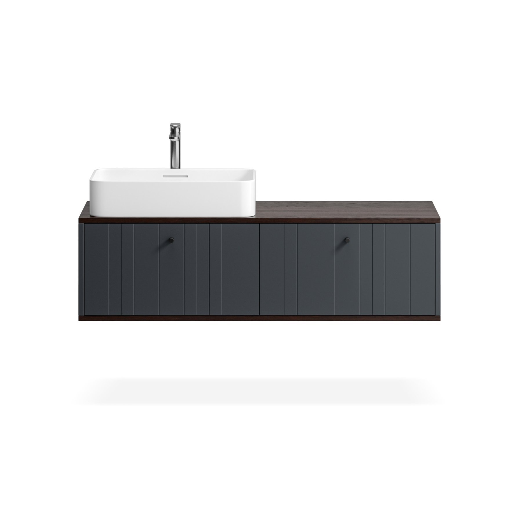 Компактные модели подвесных тумб с одним рядом выдвижных ящиков или ящиком и полкой гармонично сочетаются с линейкой накладных раковин большинства производителей.