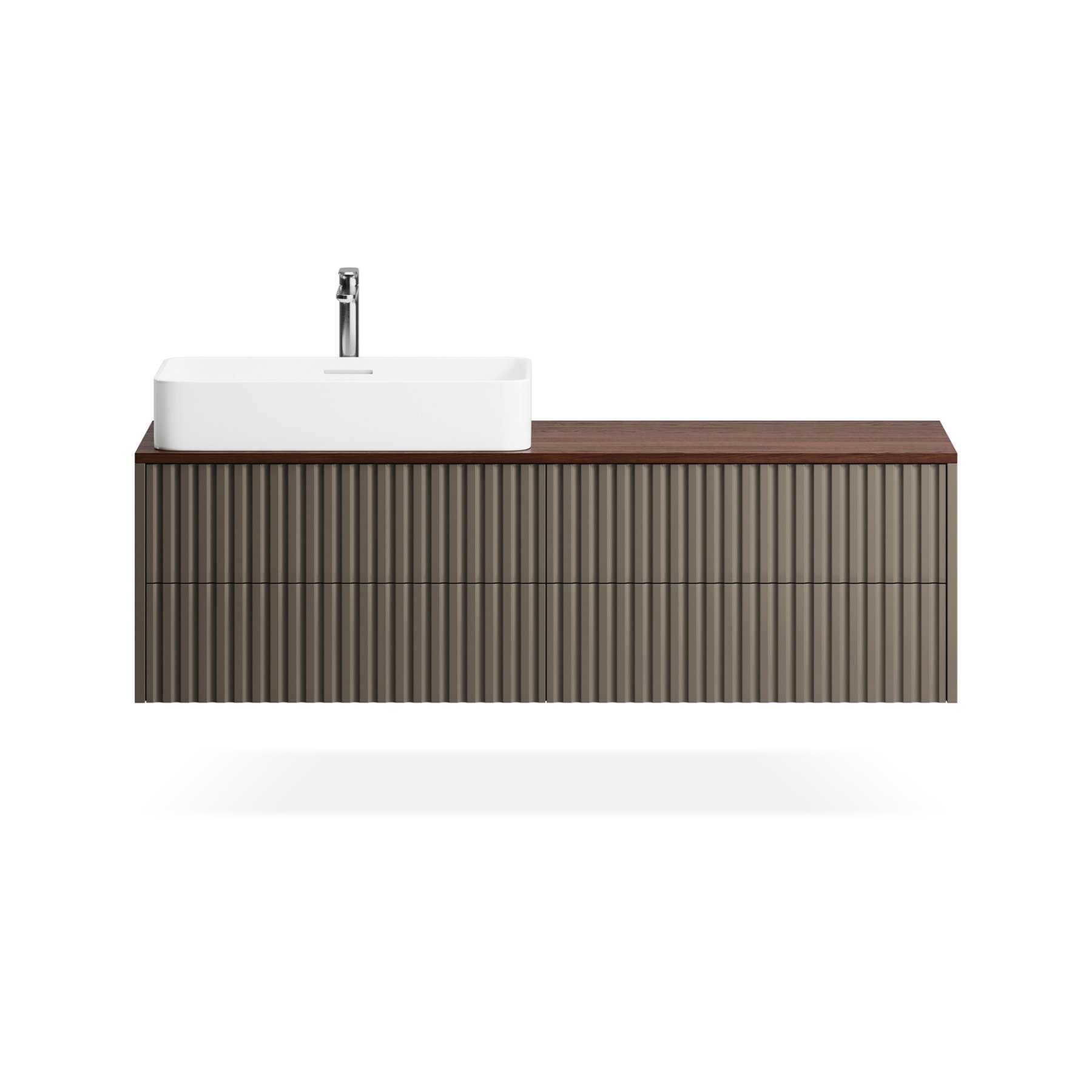 Компактные модели подвесных тумб с четырьмя выдвижными ящиками гармонично сочетаются с линейкой накладных раковин большинства производителей.