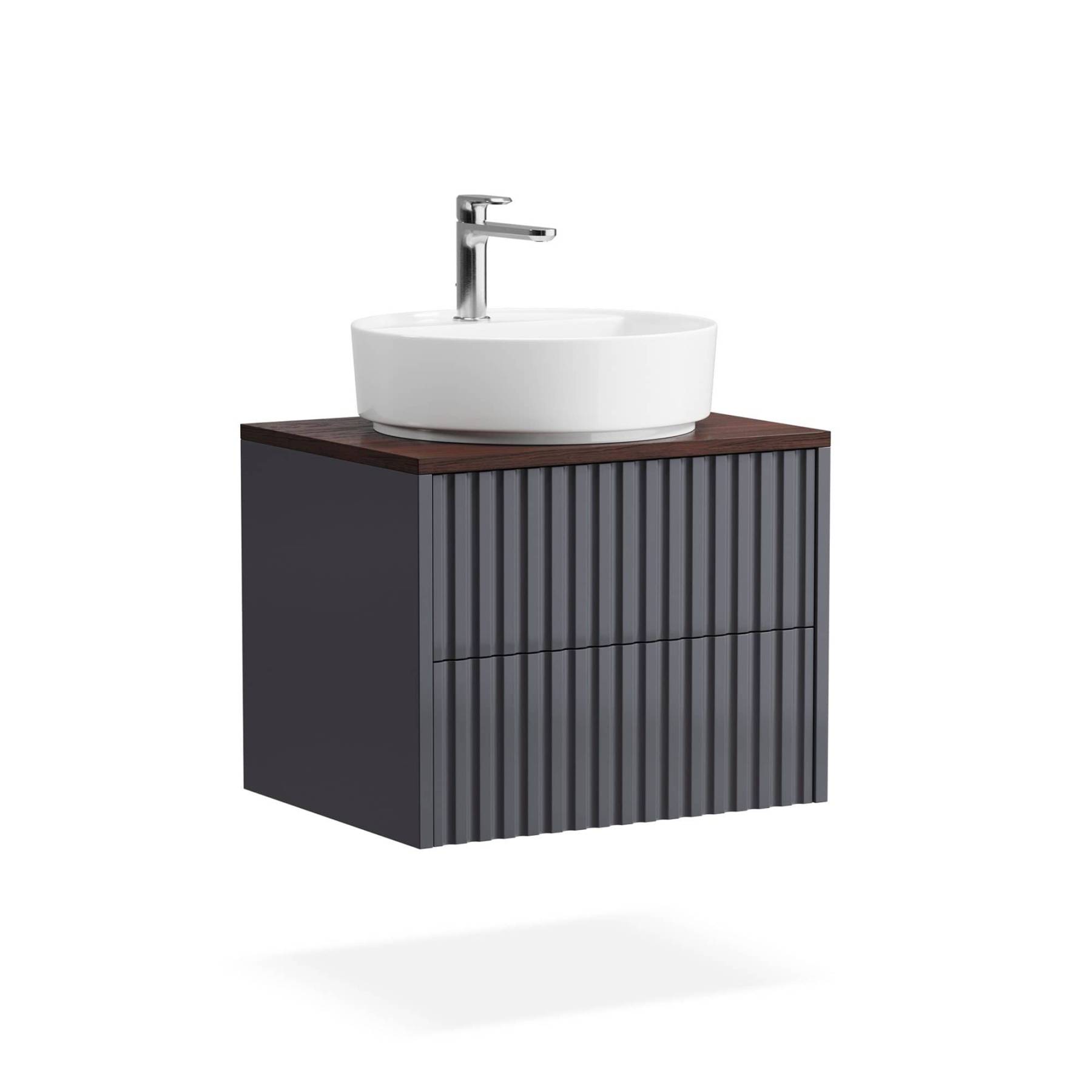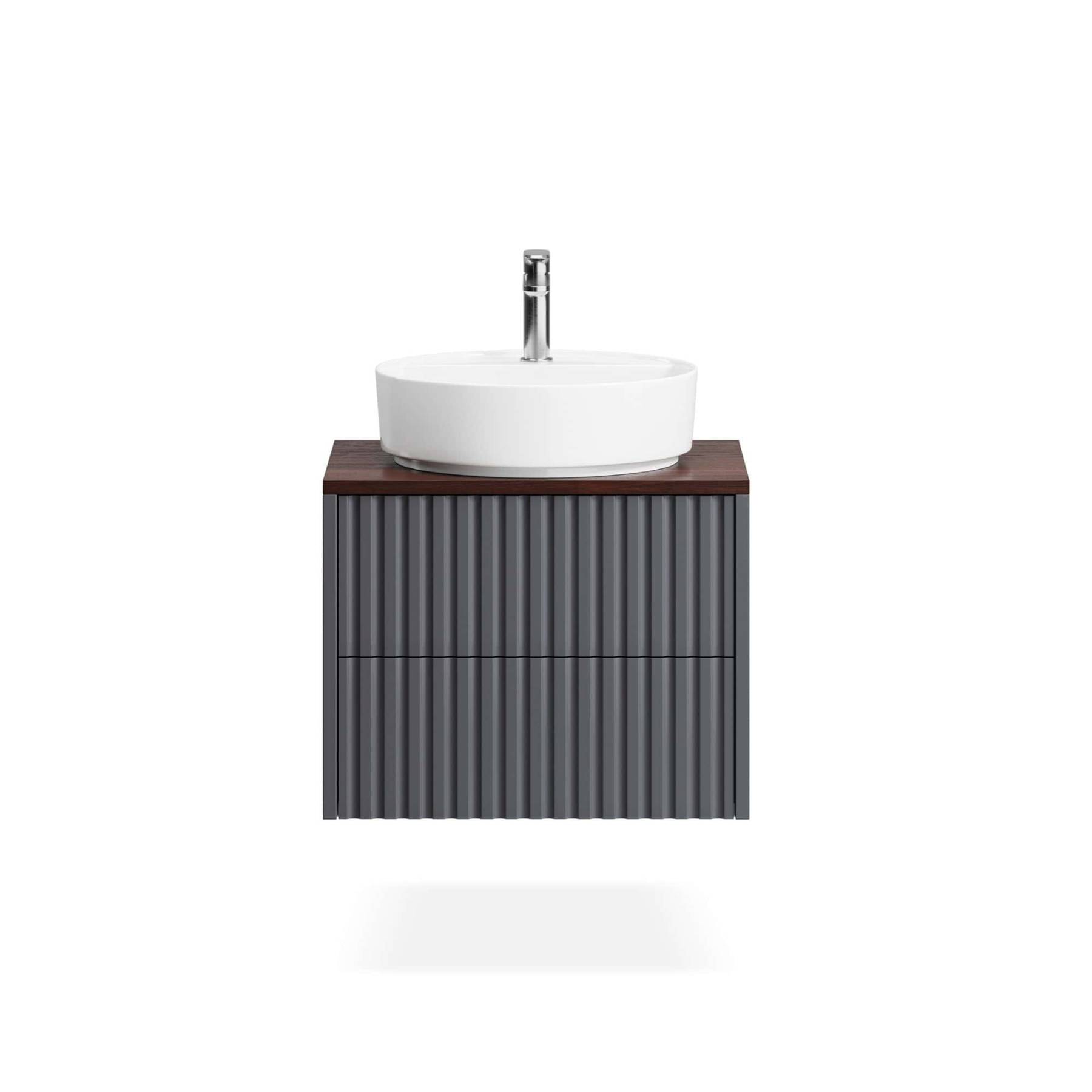 Компактные модели подвесных тумб с одним или двумя выдвижными ящиками гармонично сочетаются с линейкой накладных раковин большинства производителей. Особенность коллекции Vertical – 7 узоров вертикальной фрезеровки на фасадах, каждая из которых задает совершенно разный ритм и интересную игру теней. Особенности коллекции: По запросу выполним отверстия в столешнице под вашу раковину или смеситель, сместим вырез под сифон в ящике. Выполнена из влагостойкого МДФ, все поверхности дополнительно защищены от попадания влаги. Ящики на метабоксах, поддержка столешницы усиленной алюминиевой конструкцией и традиционно качественная немецкая фурнитура Hettich. Ящики дополнены скрытыми направляющими с доводчиками Hettich Quadro, оснащены механизмом Push to open Silent. В каталоге представлены четыре варианта комбинаций отделок для подвесных тумб и четыре варианта для изделий на цоколе. Выбирайте оттенок эмали, отделку корпуса, тонировку, ручки, а также узор фрезеровки. В коллекцию входят 30 стандартных моделей тумб с возможностью изменения размеров и внутреннего наполнения.