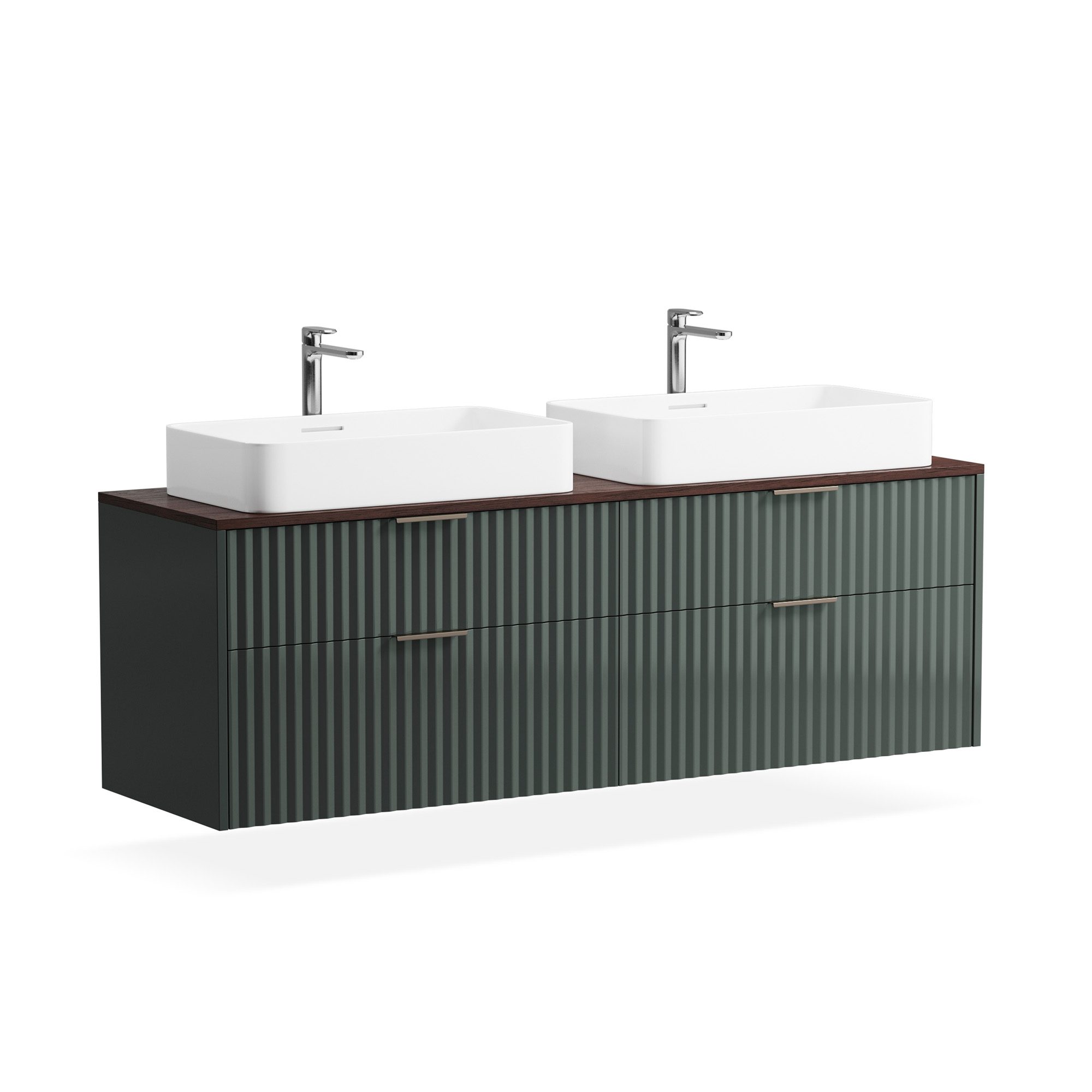 Компактные модели подвесных тумб с одним или двумя выдвижными ящиками гармонично сочетаются с линейкой накладных раковин большинства производителей. Особенность коллекции Vertical – 7 узоров вертикальной фрезеровки на фасадах, каждая из которых задает совершенно разный ритм и интересную игру теней. Особенности коллекции: По запросу выполним отверстия в столешнице под вашу раковину или смеситель, сместим вырез под сифон в ящике. Выполнена из влагостойкого МДФ, все поверхности дополнительно защищены от попадания влаги. Ящики на метабоксах, поддержка столешницы усиленной алюминиевой конструкцией и традиционно качественная немецкая фурнитура Hettich. Ящики дополнены скрытыми направляющими с доводчиками Hettich Quadro, оснащены механизмом Push to open Silent. В каталоге представлены четыре варианта комбинаций отделок для подвесных тумб и четыре варианта для изделий на цоколе. Выбирайте оттенок эмали, отделку корпуса, тонировку, ручки, а также узор фрезеровки. В коллекцию входят 30 стандартных моделей тумб с возможностью изменения размеров и внутреннего наполнения.
