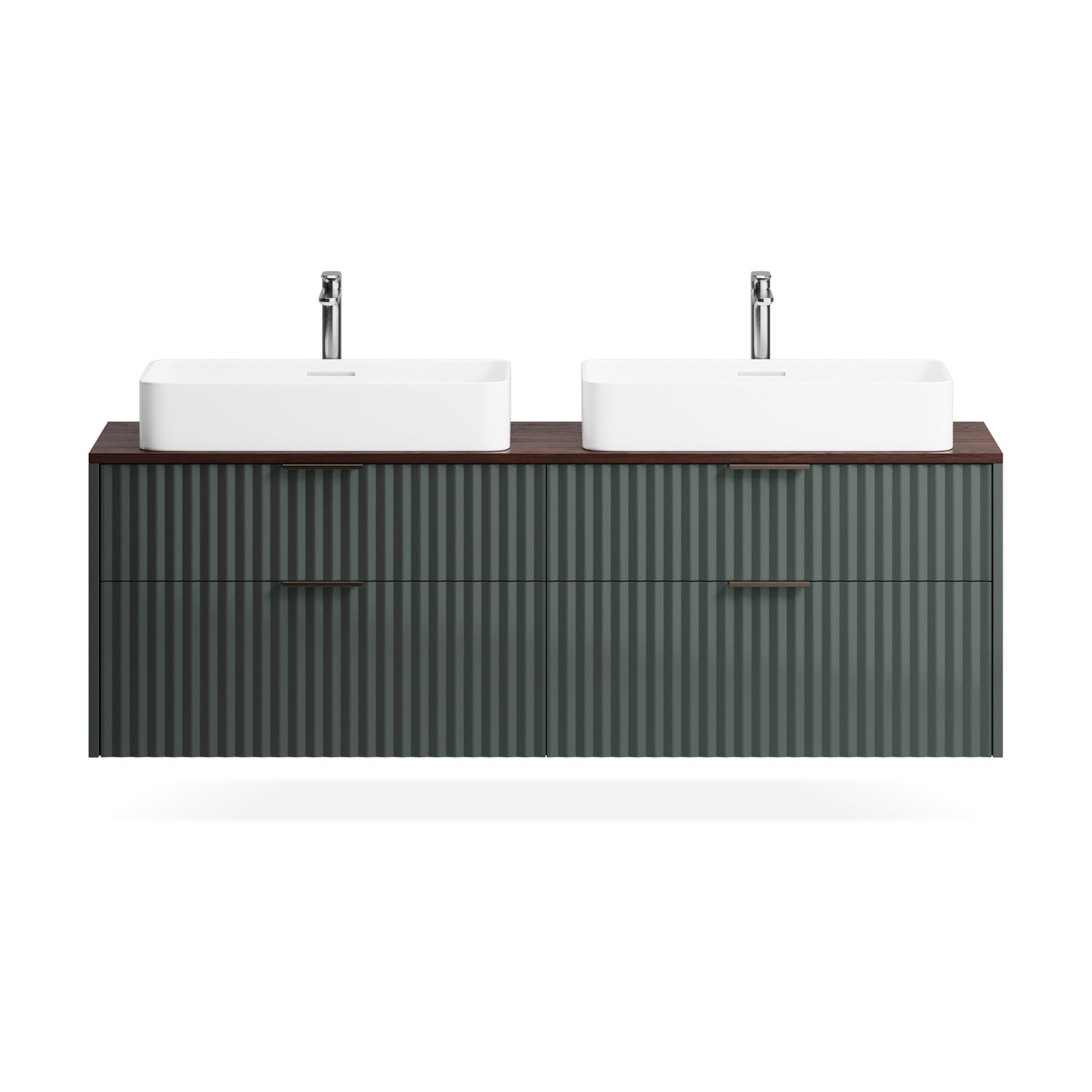 Компактные модели подвесных тумб с четырьмя выдвижными ящиками гармонично сочетаются с линейкой накладных раковин большинства производителей.