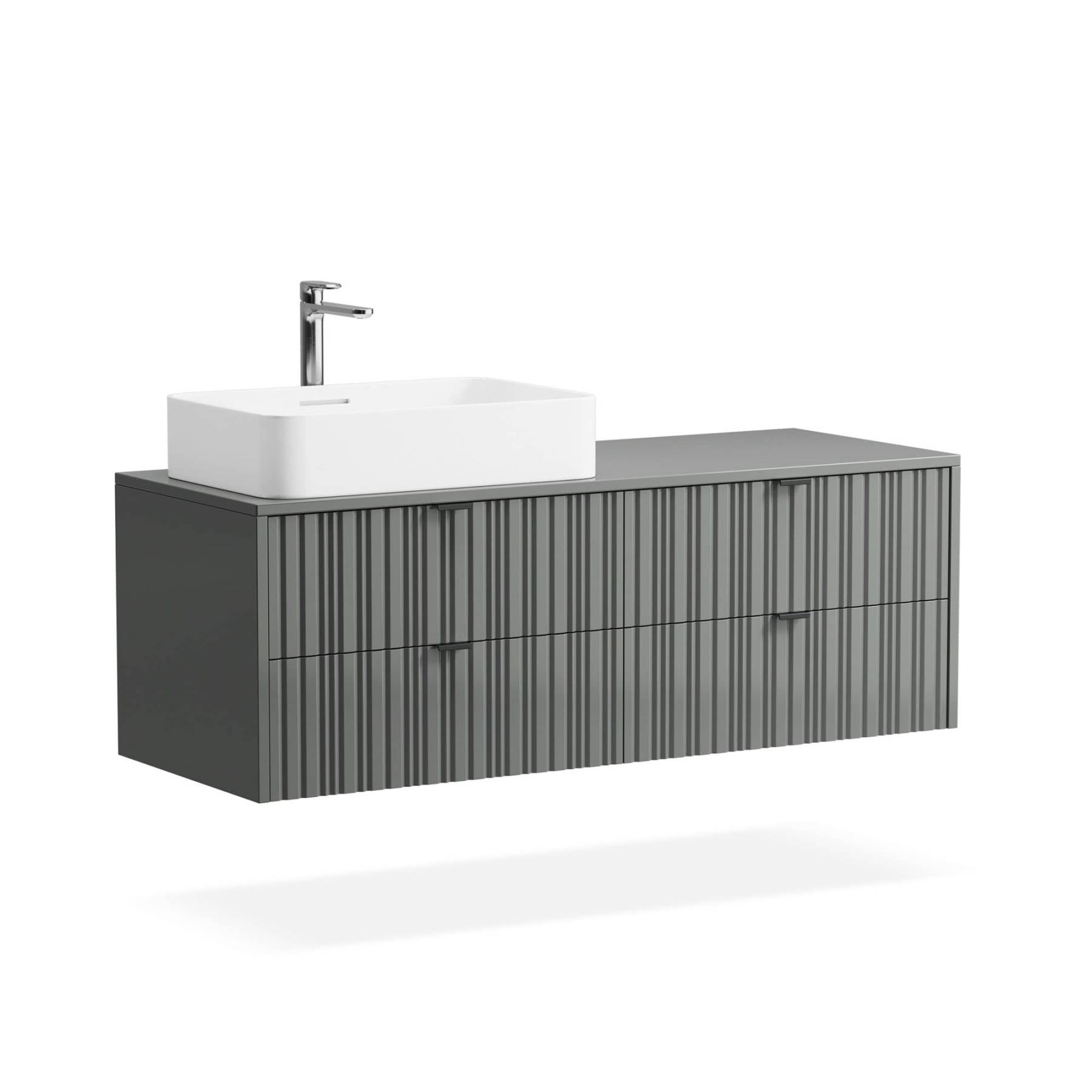Компактные модели подвесных тумб с одним или двумя выдвижными ящиками гармонично сочетаются с линейкой накладных раковин большинства производителей. Особенность коллекции Vertical – 7 узоров вертикальной фрезеровки на фасадах, каждая из которых задает совершенно разный ритм и интересную игру теней. Особенности коллекции: По запросу выполним отверстия в столешнице под вашу раковину или смеситель, сместим вырез под сифон в ящике. Выполнена из влагостойкого МДФ, все поверхности дополнительно защищены от попадания влаги. Ящики на метабоксах, поддержка столешницы усиленной алюминиевой конструкцией и традиционно качественная немецкая фурнитура Hettich. Ящики дополнены скрытыми направляющими с доводчиками Hettich Quadro, оснащены механизмом Push to open Silent. В каталоге представлены четыре варианта комбинаций отделок для подвесных тумб и четыре варианта для изделий на цоколе. Выбирайте оттенок эмали, отделку корпуса, тонировку, ручки, а также узор фрезеровки. В коллекцию входят 30 стандартных моделей тумб с возможностью изменения размеров и внутреннего наполнения.
