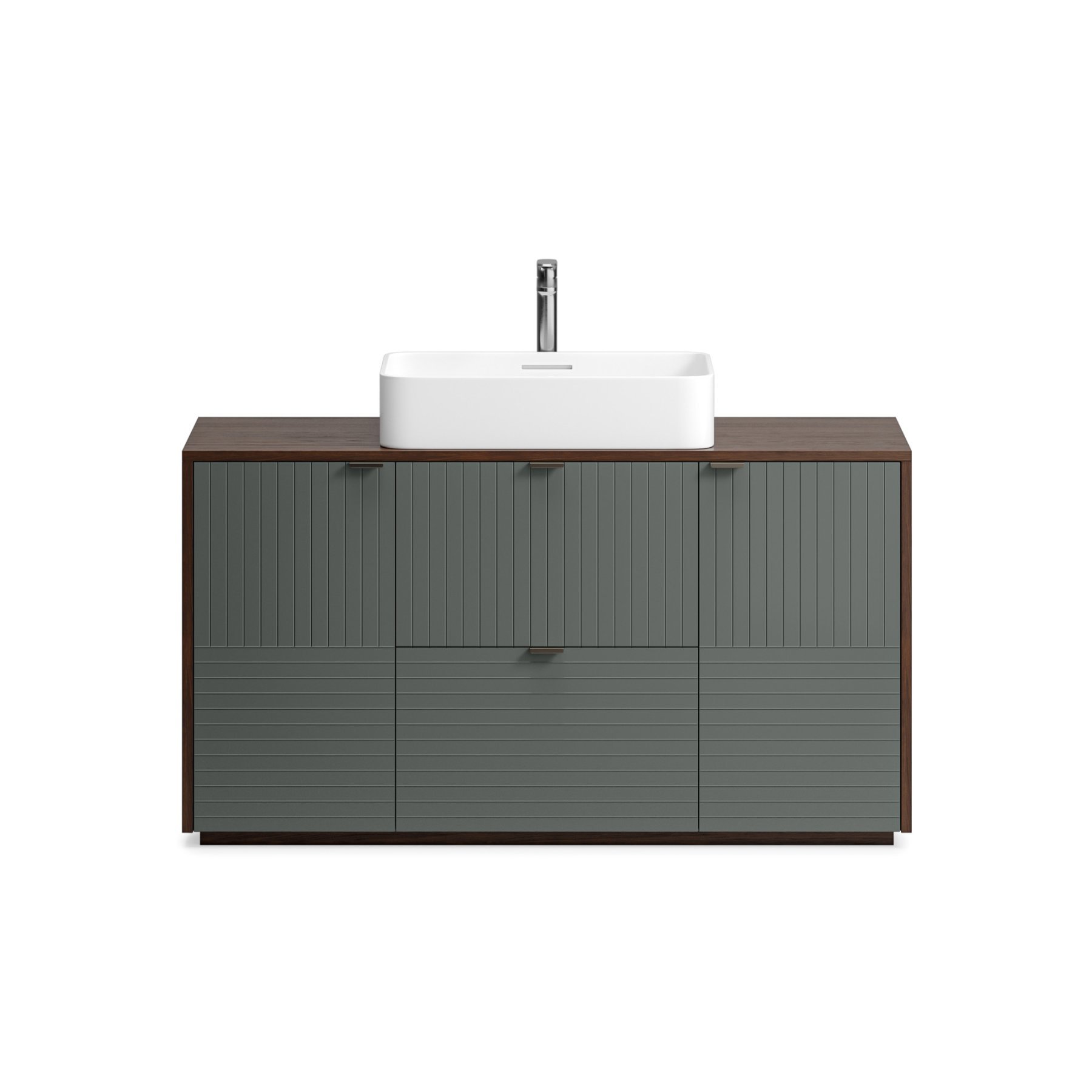 Напольные модели с двумя или тремя выдвижными ящиками и секциями с полками гармонично сочетаются с линейкой накладных раковин большинства производителей.