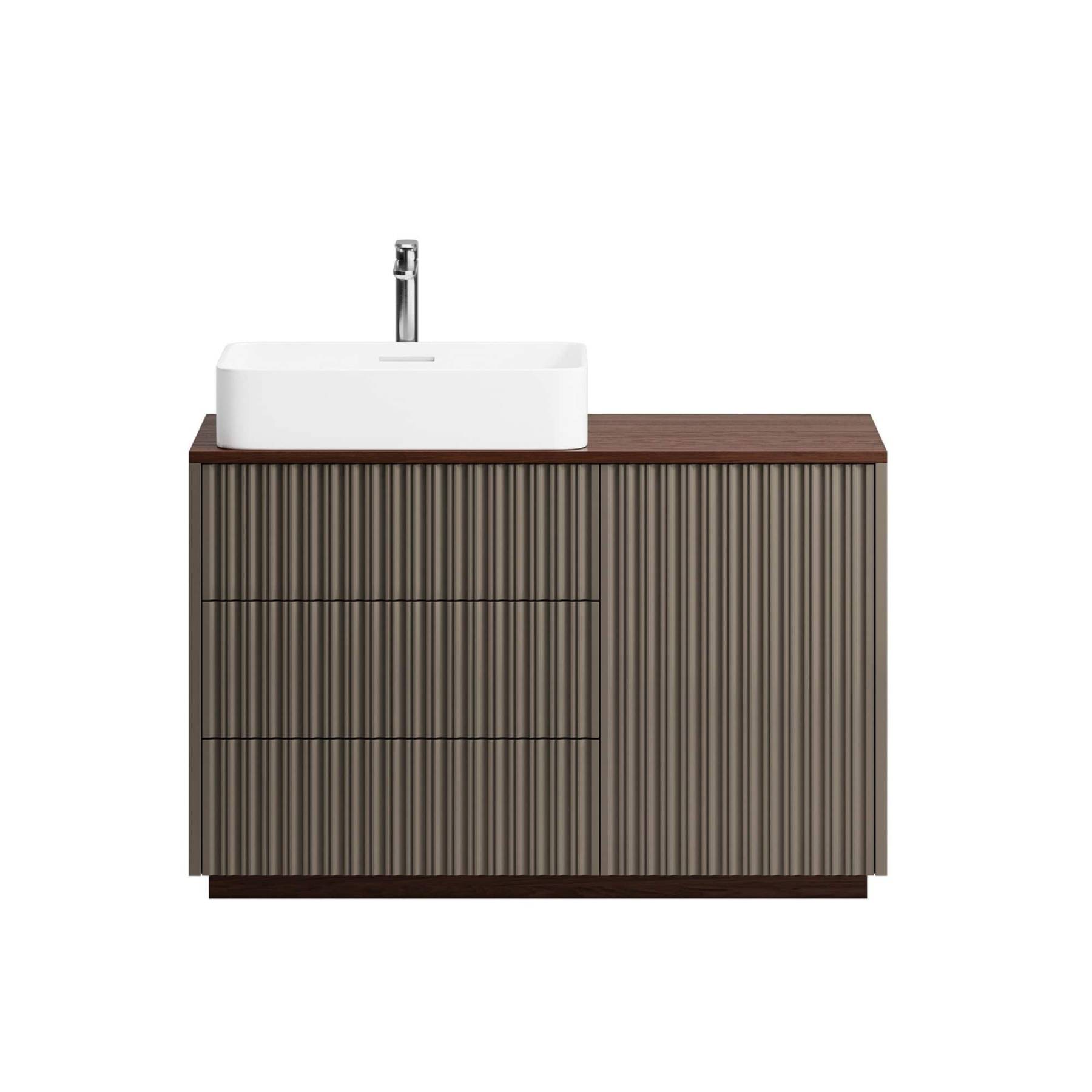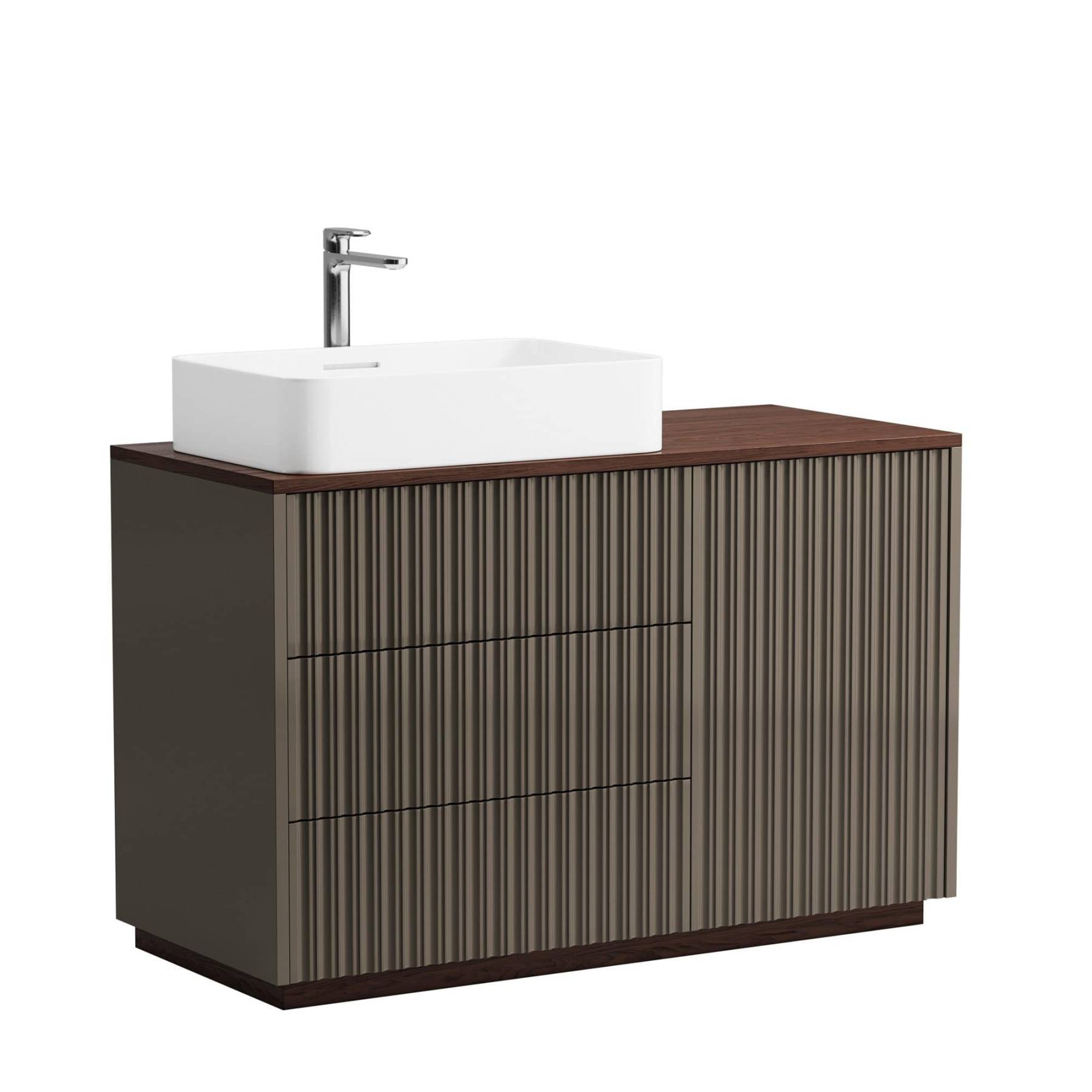 Компактные модели подвесных тумб с одним или двумя выдвижными ящиками гармонично сочетаются с линейкой накладных раковин большинства производителей. Особенность коллекции Vertical – 7 узоров вертикальной фрезеровки на фасадах, каждая из которых задает совершенно разный ритм и интересную игру теней. Особенности коллекции: По запросу выполним отверстия в столешнице под вашу раковину или смеситель, сместим вырез под сифон в ящике. Выполнена из влагостойкого МДФ, все поверхности дополнительно защищены от попадания влаги. Ящики на метабоксах, поддержка столешницы усиленной алюминиевой конструкцией и традиционно качественная немецкая фурнитура Hettich. Ящики дополнены скрытыми направляющими с доводчиками Hettich Quadro, оснащены механизмом Push to open Silent. В каталоге представлены четыре варианта комбинаций отделок для подвесных тумб и четыре варианта для изделий на цоколе. Выбирайте оттенок эмали, отделку корпуса, тонировку, ручки, а также узор фрезеровки. В коллекцию входят 30 стандартных моделей тумб с возможностью изменения размеров и внутреннего наполнения.