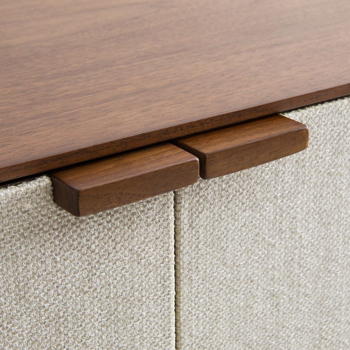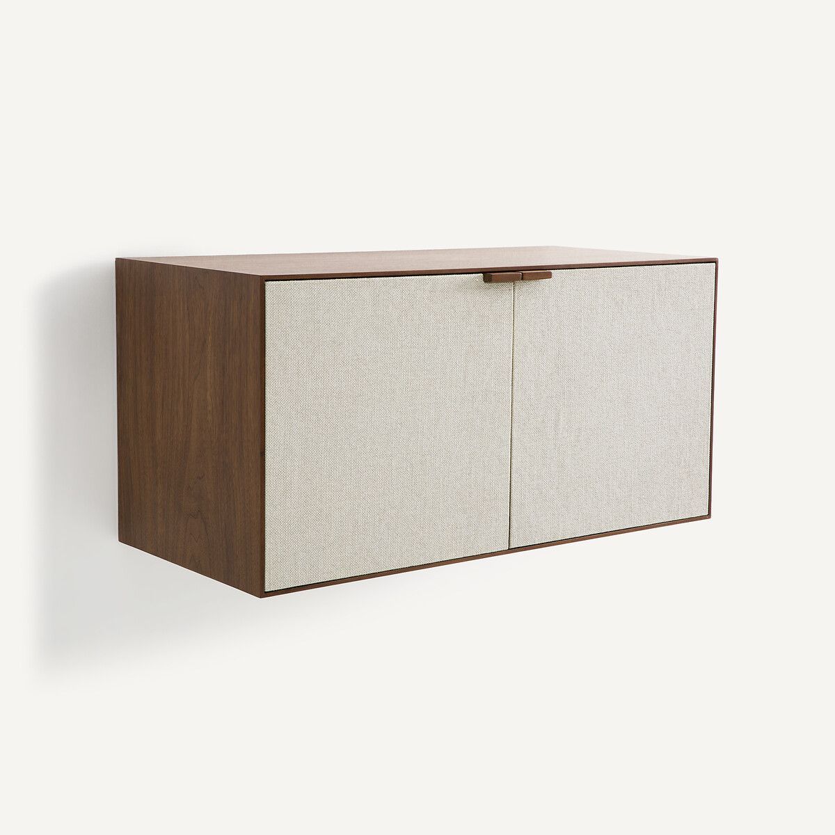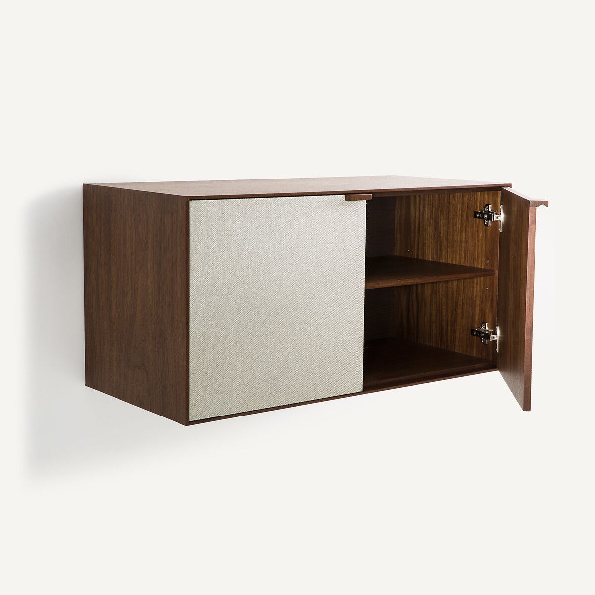 — 2 дверцы из МДФ, шпонированного орехом, фасады с обивкой из ткани 91% полиэстера, 9% акрила