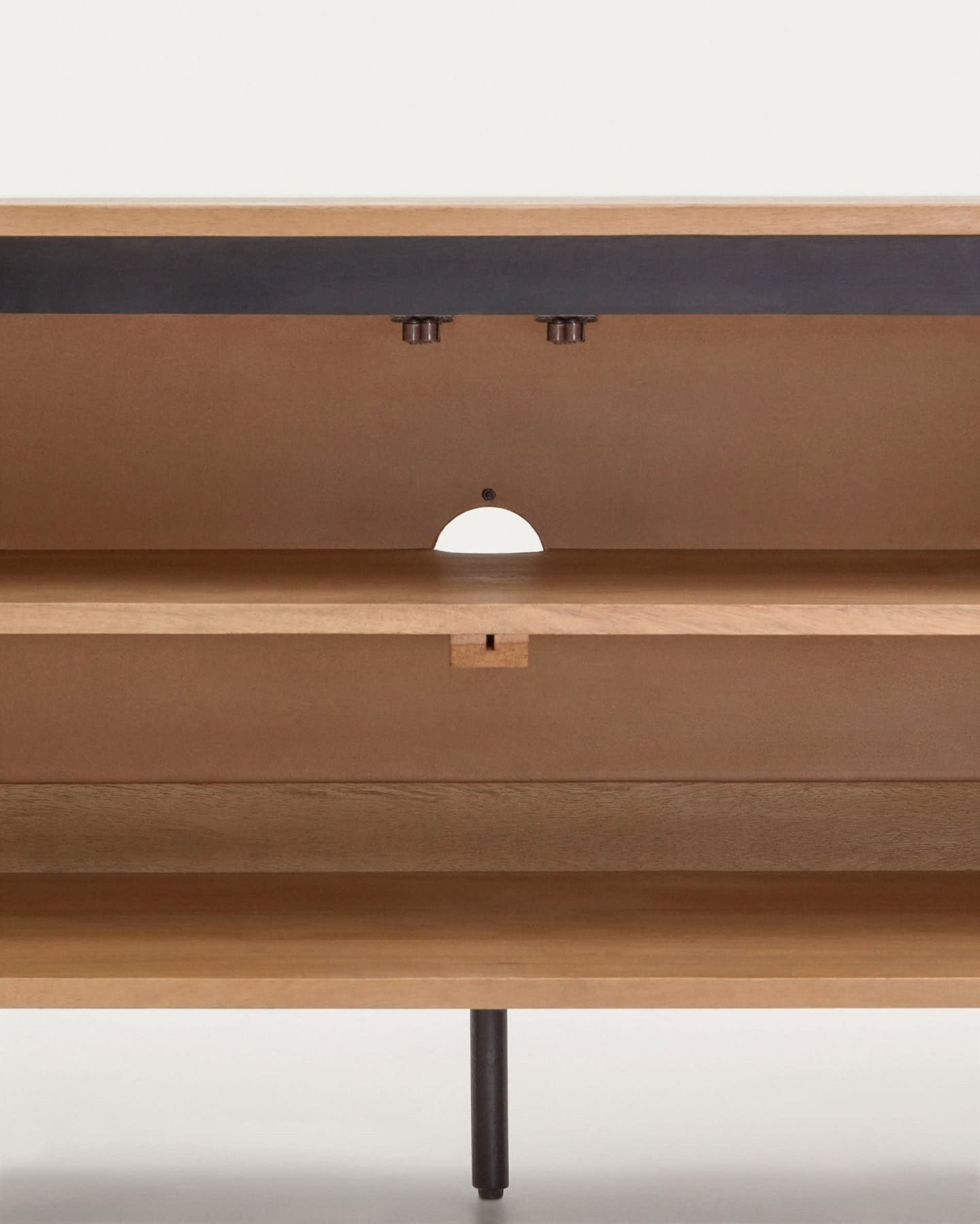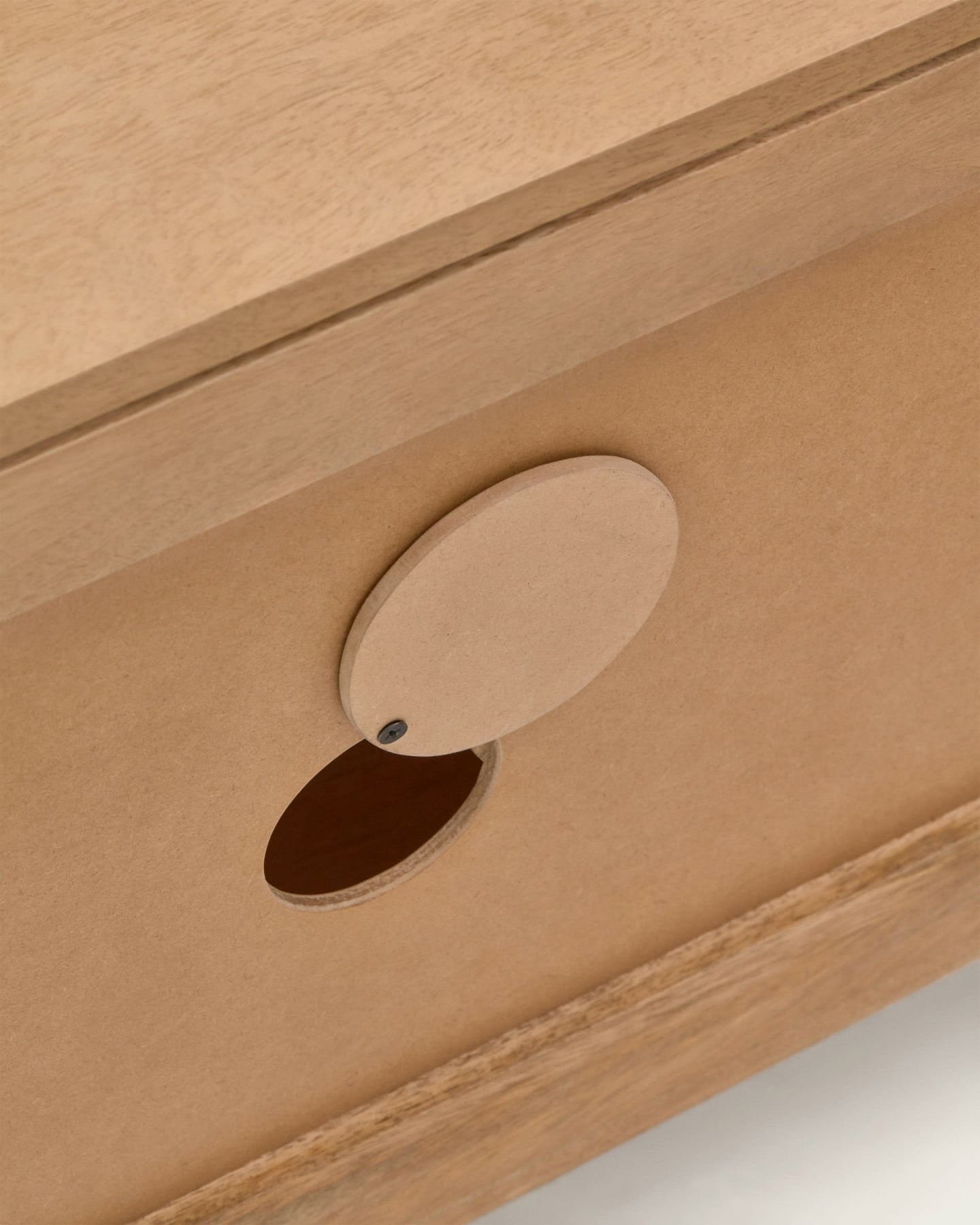 Licia — это дизайн команды Kave Home, сделанный вручную из кусочков устойчивого массивного дерева манго, индивидуально расположенных один за другим, чтобы создать его округлую форму. Стиль, который привносит плавность и движение в ваш интерьер.