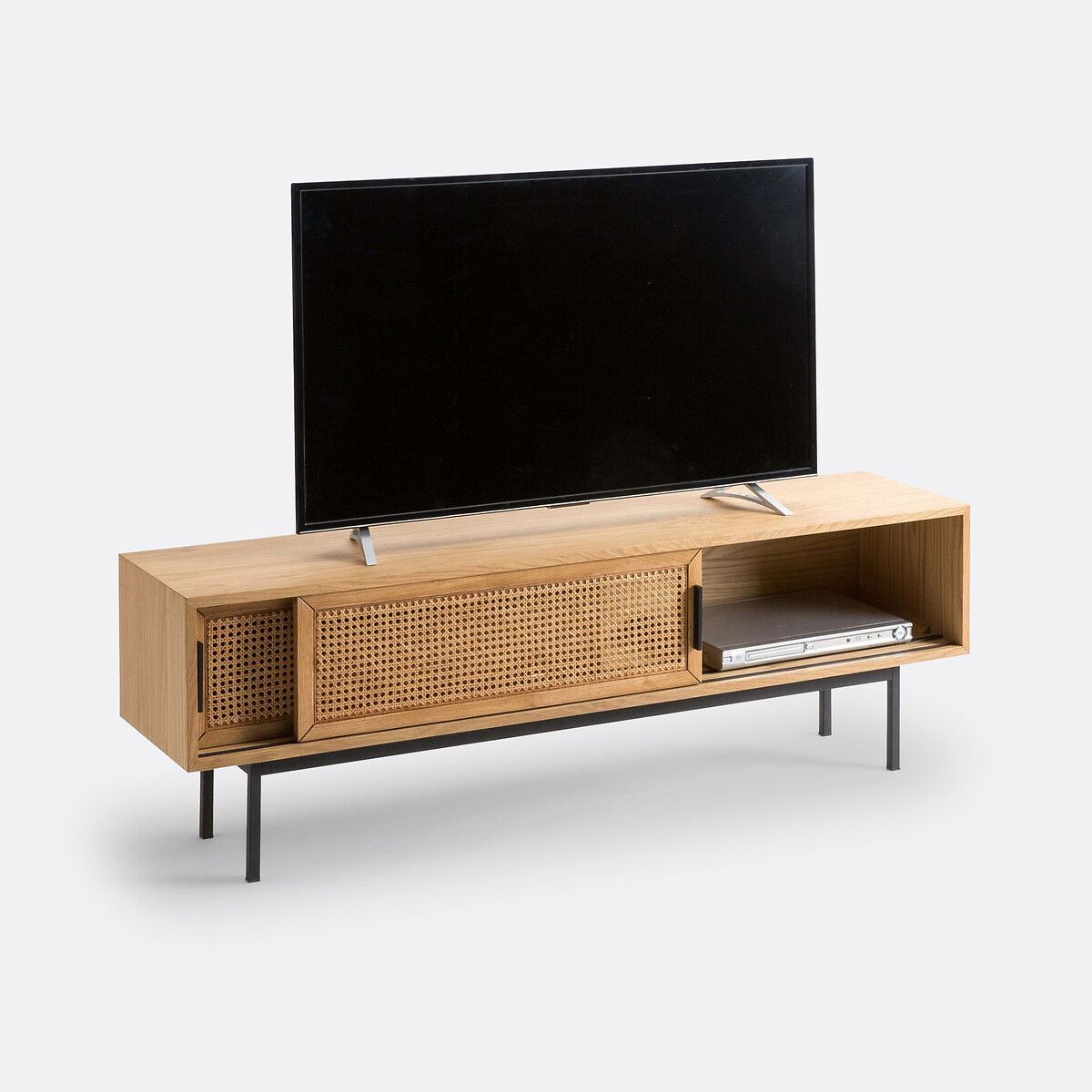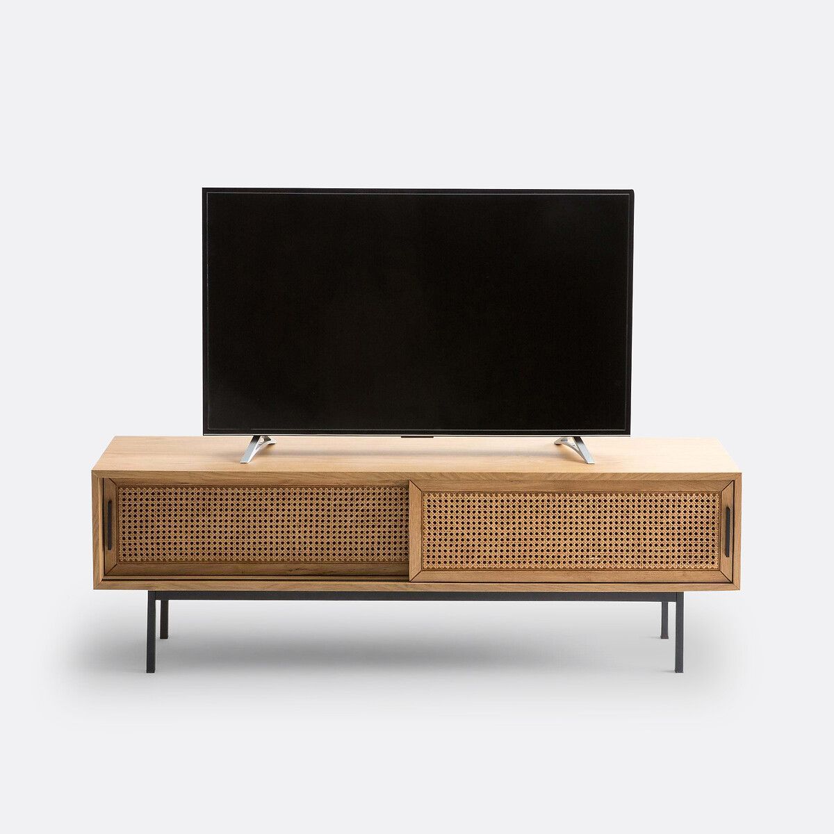 Тумба-анфилада в стиле 50-х годов сочетает с современной элегантностью дуб и плетеный ротанг.