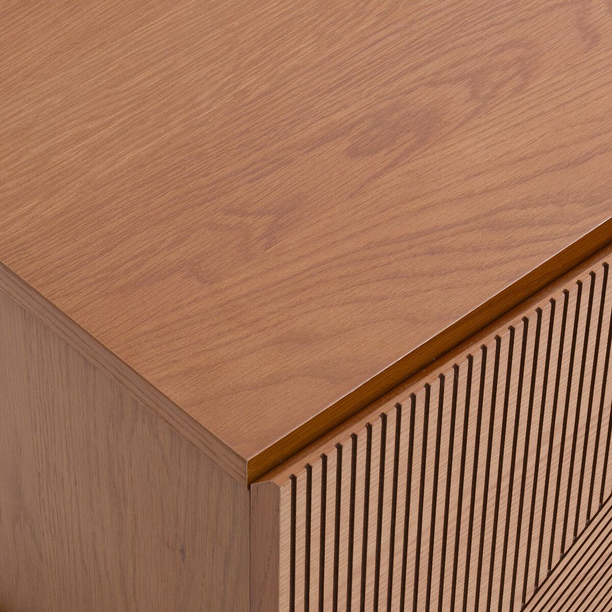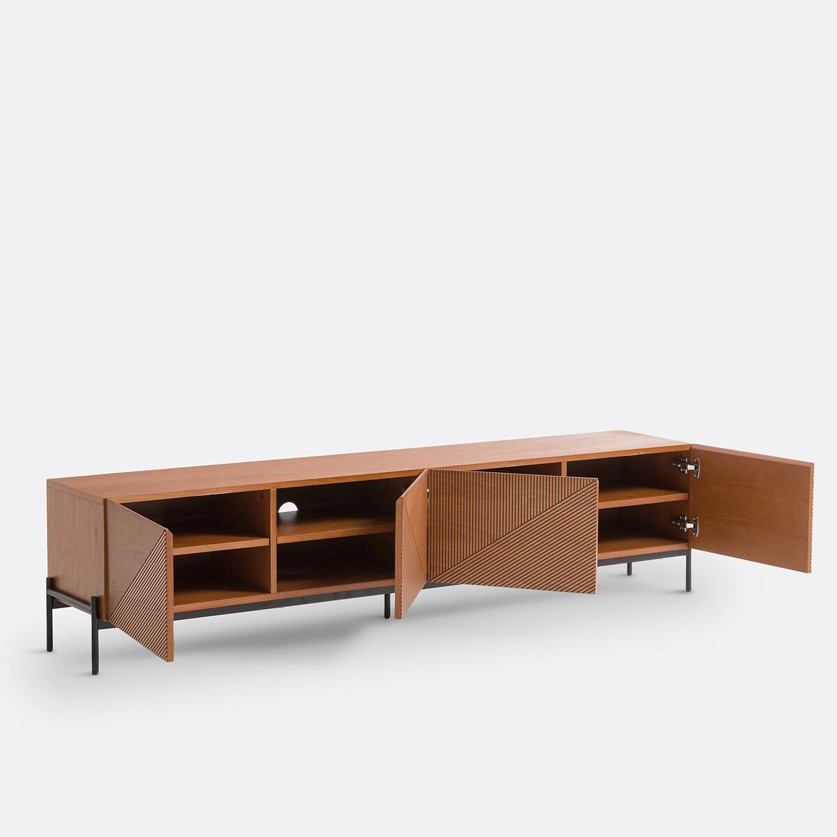 Мебель для ТВ в современном дизайне, дверки с отделкой бороздками, большая длина — 2 метра. Изделие La Redoute Intérieurs.
