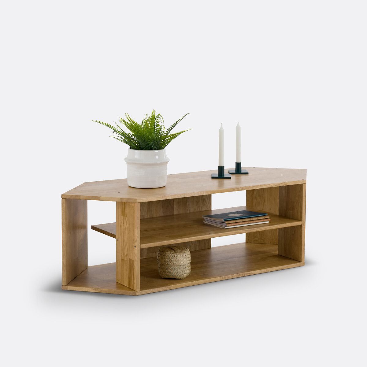 Практичная мебель для ТВ, когда хочется использовать пространство в углах гостиной. Эксклюзивное изделие от La Redoute Intérieurs.