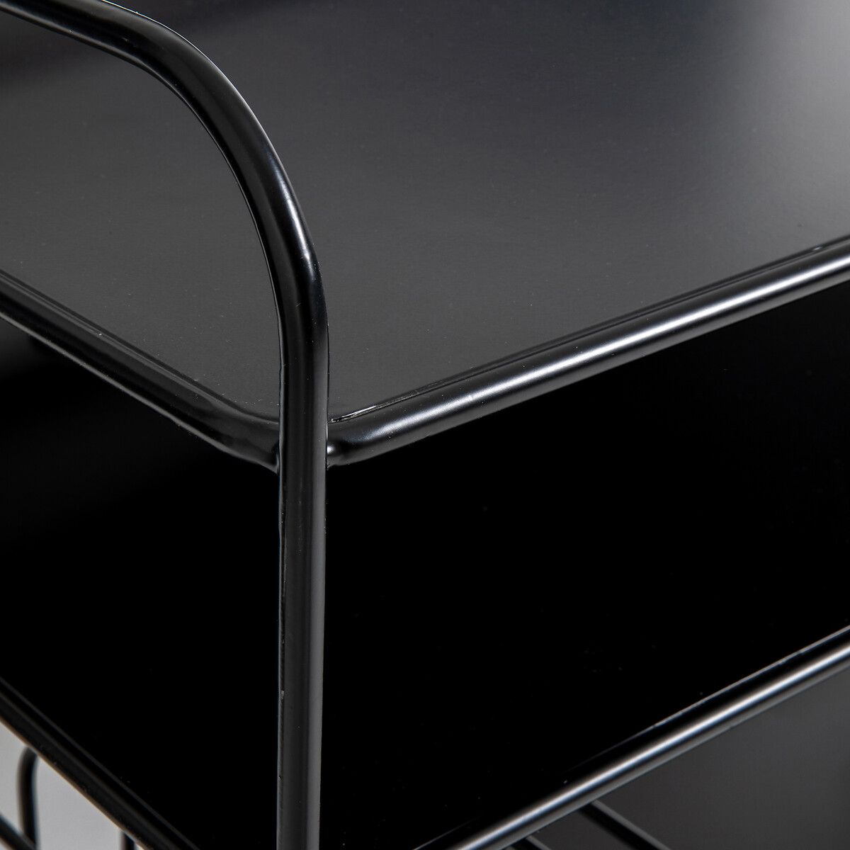 Из лакированной стали черного матового цвета с эпоксидным покрытием.