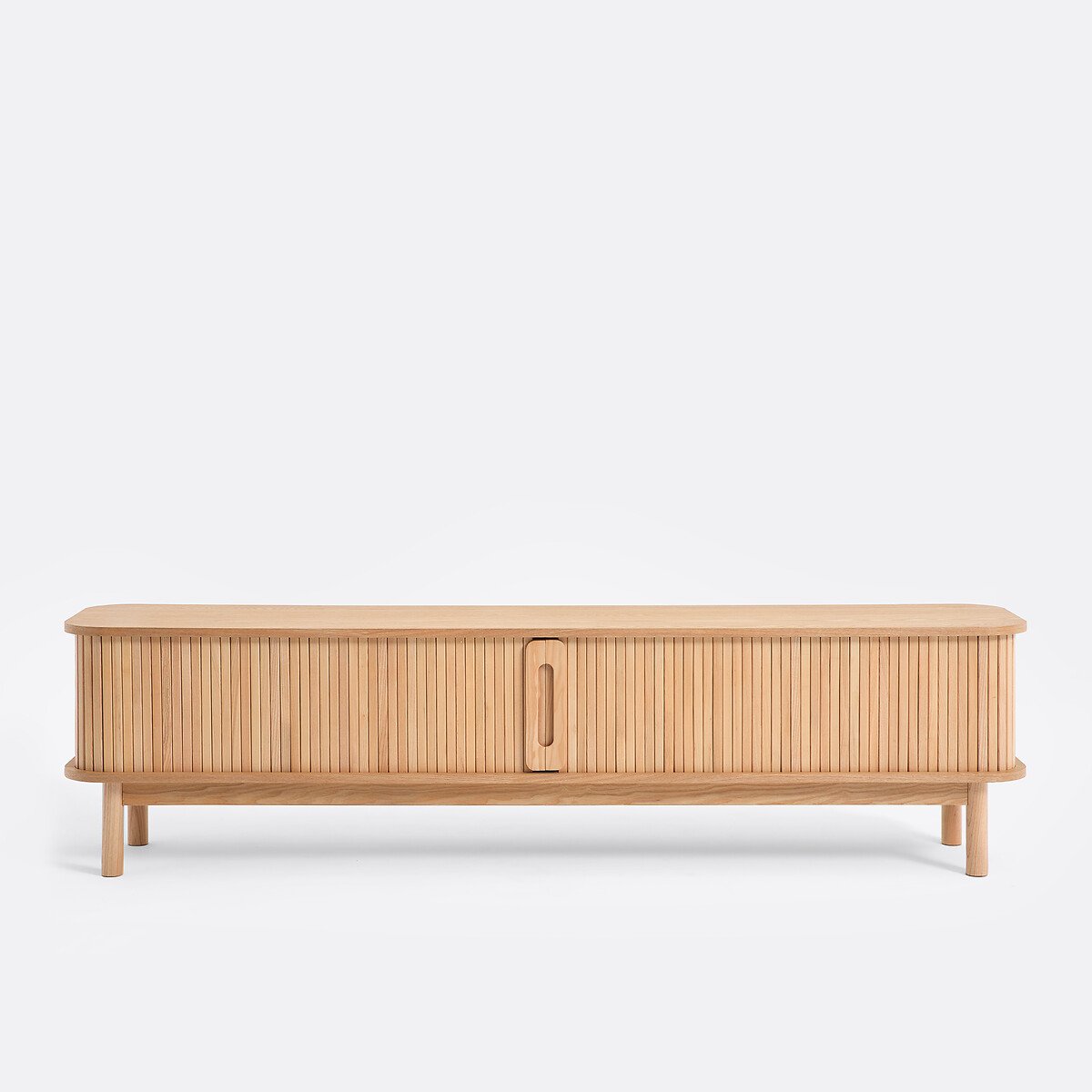 — Две раздвижные дверцы со шторками из массива ясеня, НЦ-лакировка