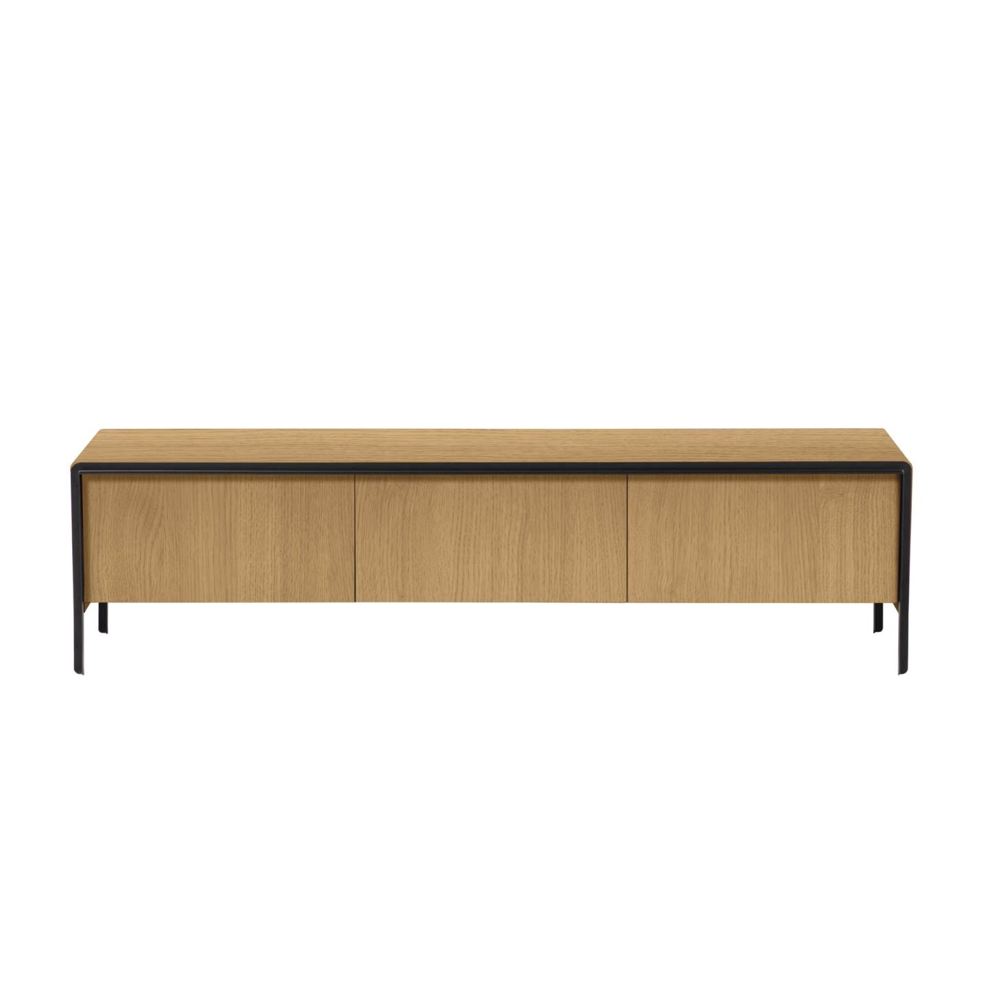 Тумба прямоугольной формы, с закругленными углами. Каркас разделен вертикальными перегородками на три равных отделения шириной по 56 см.