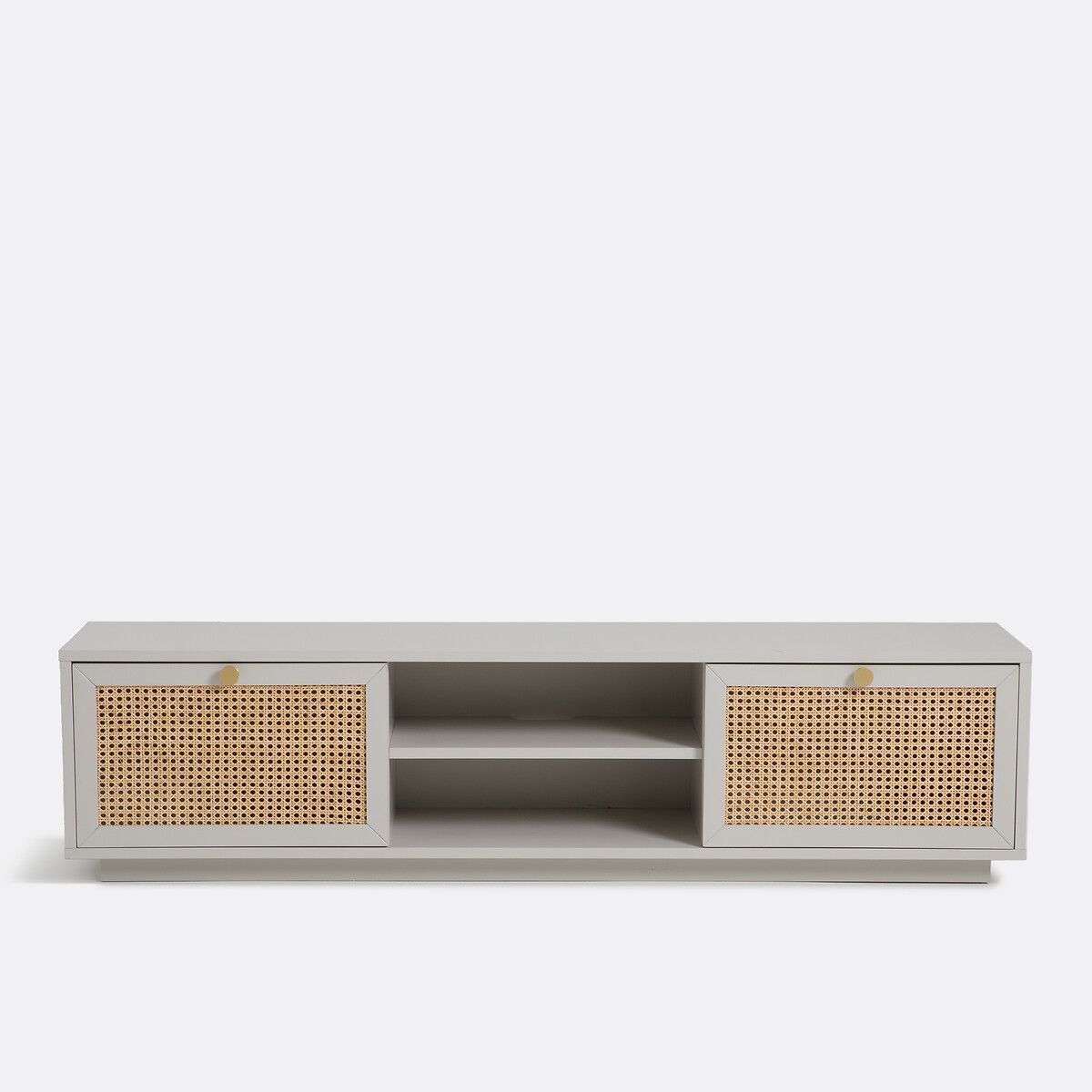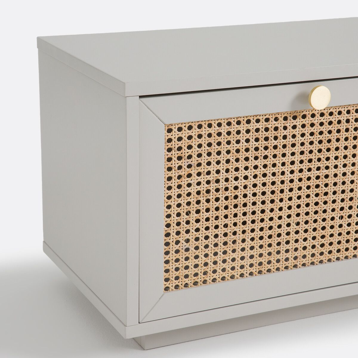 Тумба под телевизор и Hi-Fi Paola изготовлена из древесного МДФ, массива сосны и ротангового плетения. Внутренние полки за дверцами и открытые ниши можно использовать для хранения коробок, консолей, DVD-дисков. Элегантный и функциональный предмет мебели для гостиной. Творение La Redoute Intérieurs.
