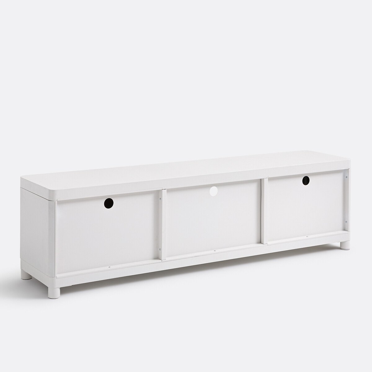 Тумба под телевизор Livona / Ливона - предмет из коллекции Les Irrésistibles / Ле Ирезестибль.Полностью металлическая тумба для телевизора Livona / Ливона придаст вашему дому современный вид. Для хранения вещей предусмотрены 2 большие ниши и 2 закрытые тумбы для оптимальной организации. Творение наших дизайнеров из La Redoute IntérieursLes Irrésistibles / Неотразимые!. Оно вам точно понравится? Коллекция доступных и неотразимых товаров, которые сделают жизнь приятнее, а будни — красивее. Мебель с уникальным дизайном, обыгрывающая интересные декоративные решения, предметы оригинальные и удобные в использовании, призванные украсить ваш дом во мгновение ока и по самой выгодной цене.Описание • Конструкция, ножки и ручки из тонированной стали с эпоксидным покрытием и текстурой (эффект зернистости) • 2 дверцы с 1 фиксированной полкой за каждой из них • 1 центральная ниша с фиксированной полкой • Для экранов диагональю до 75 дюймов • Отверстие для кабелей • Количество человек, рекомендованное для сборки: дваРазмерыОбщие размеры • Ширина: 180 см • Высота: 50 см • Глубина: 40 см • Вес: 28,4 кгВнутренние размеры • Закрытые ниши: Д57,4 x В32,9 x Г40 см • Открытые ниши: Д58,8 x В32,9 x Г40 см • Самостоятельная сборка. Размеры и вес упаковкиОдна упаковка • Ш192 x В21 x Д50 см, 36 кг