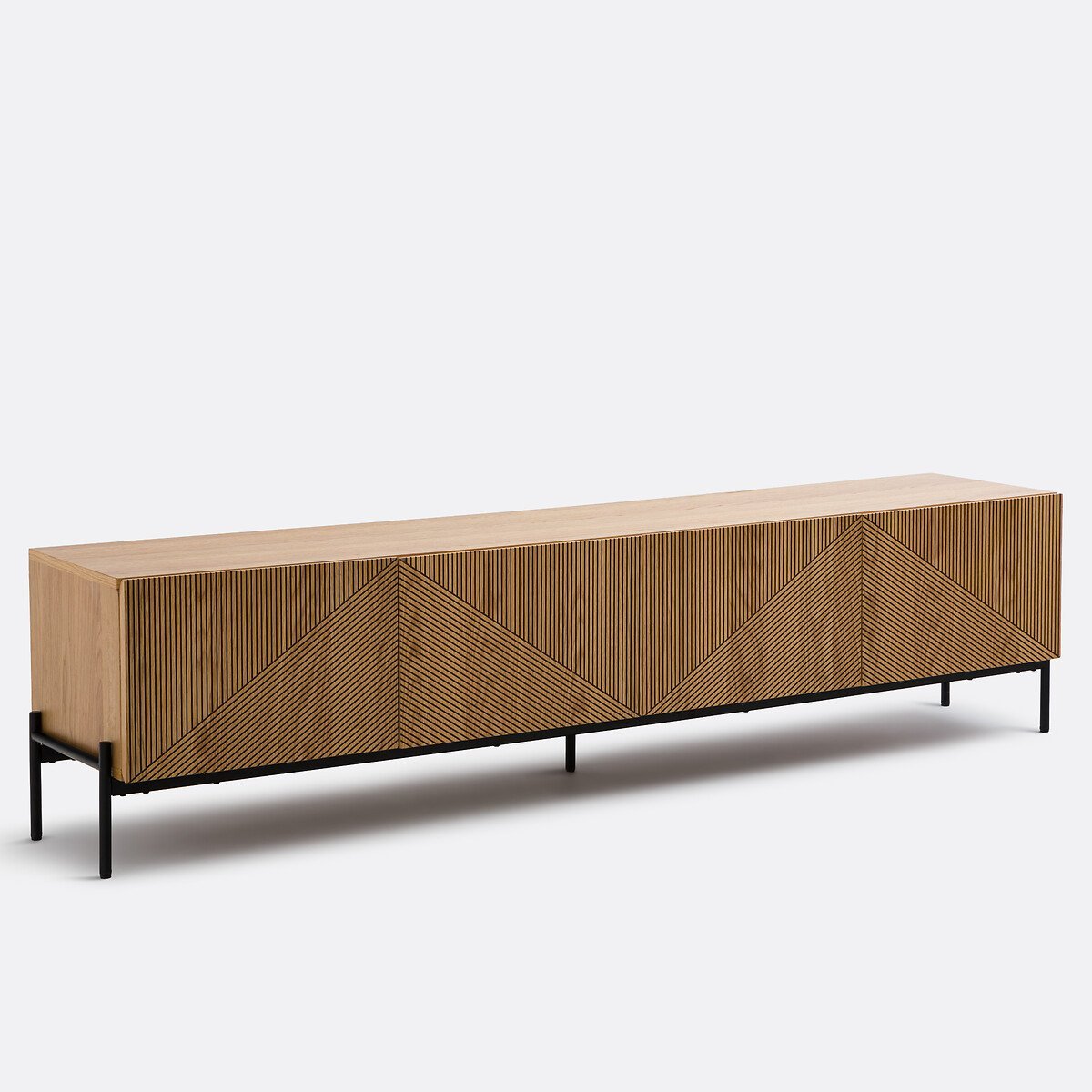 Создательница дизайна Аврора Делест: «Создавая тумбу под телевизор Lodge, я хотела объединить винтажное наследие с этническими мотивами, в частности с резным деревом. Филигранный узор придает изделию ритм и графичность».