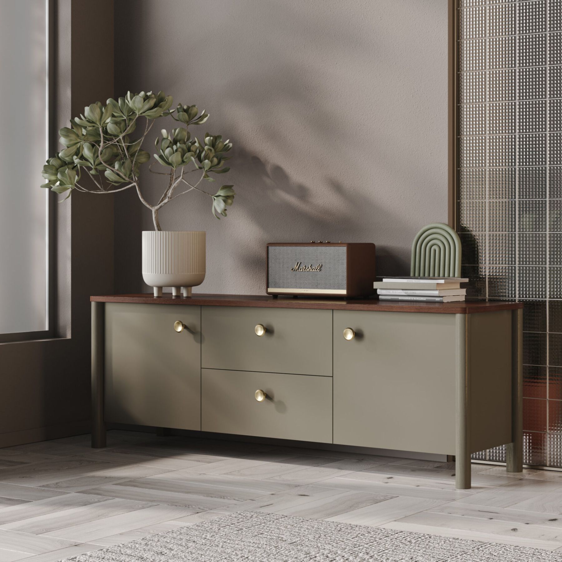 Тумба под ТВ BG070 c полками и ящиками станет украшением просторной гостиной и позволит организовать комфортное хранение вещей.