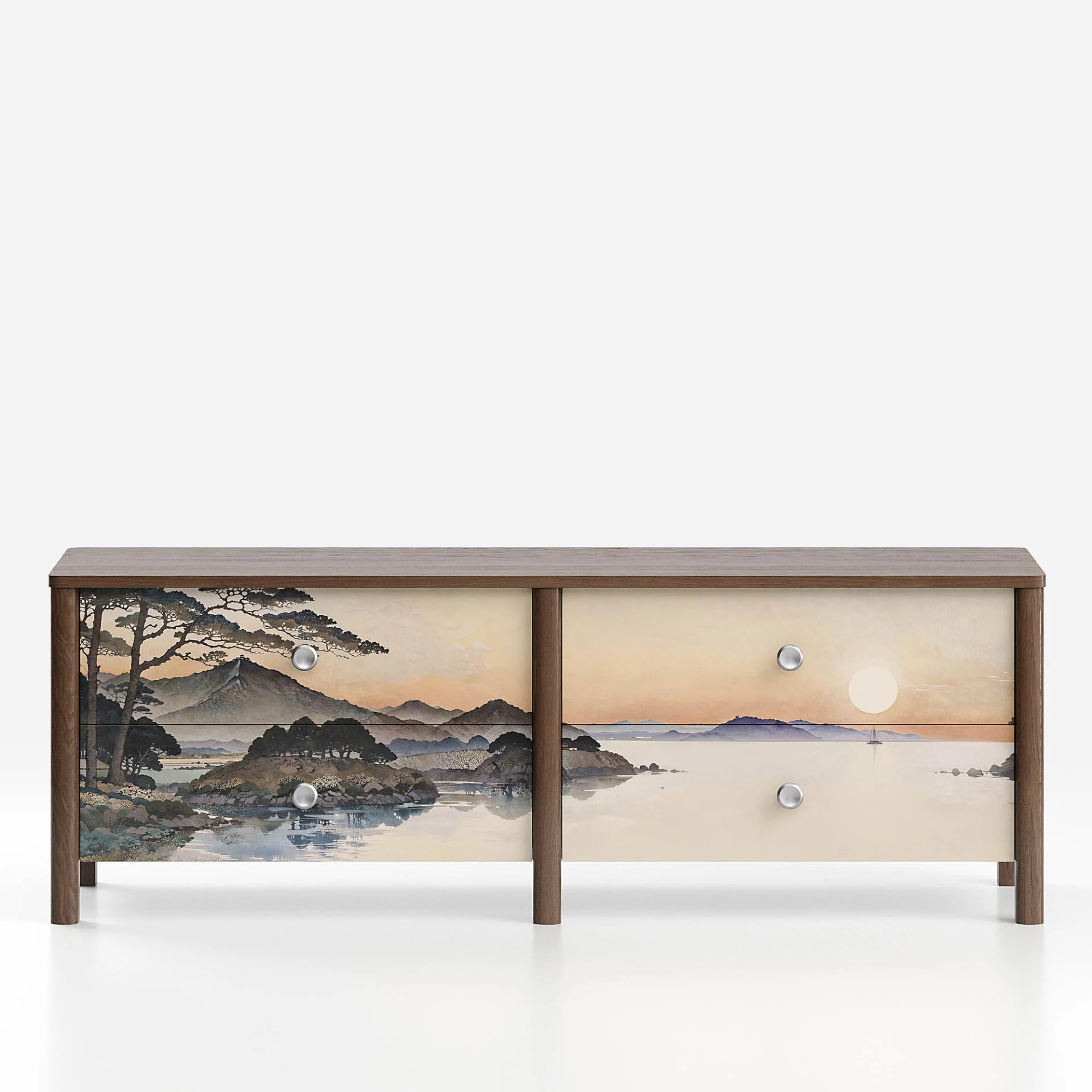 — Принты могут располагаться на фасадах мебели, а также на боковых элементах, окутывая ее с трёх сторон;