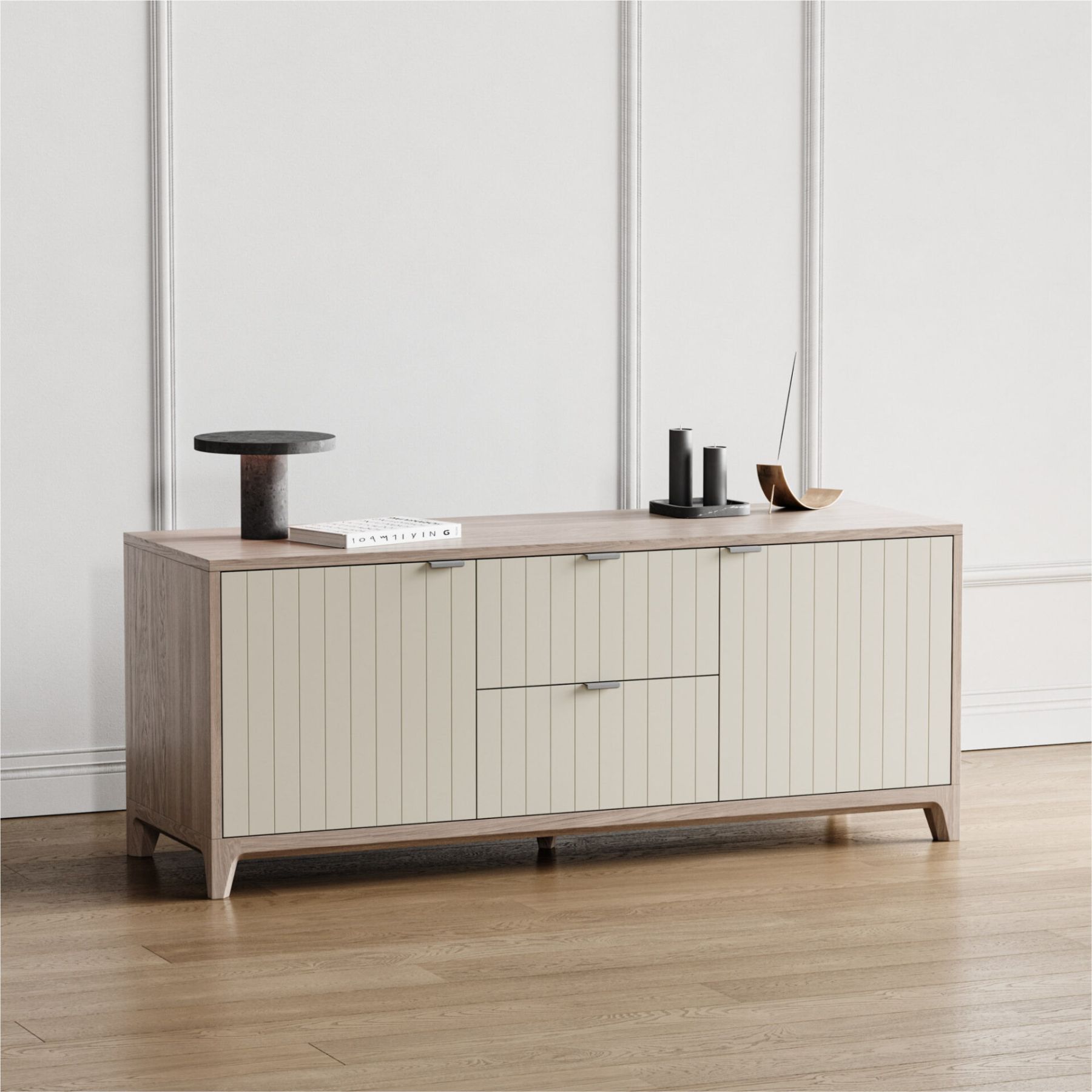 Отличительной особенностью мебели из серии CASE является вариативность ее исполнения. Выбирайте оттенок эмали, материал корпуса, тонировку основания и ножек, а также дизайн гравировки. Кроме того, вы можете заказать тумбу под ТВ, которая будет полностью покрыта натуральным шпоном дуба.