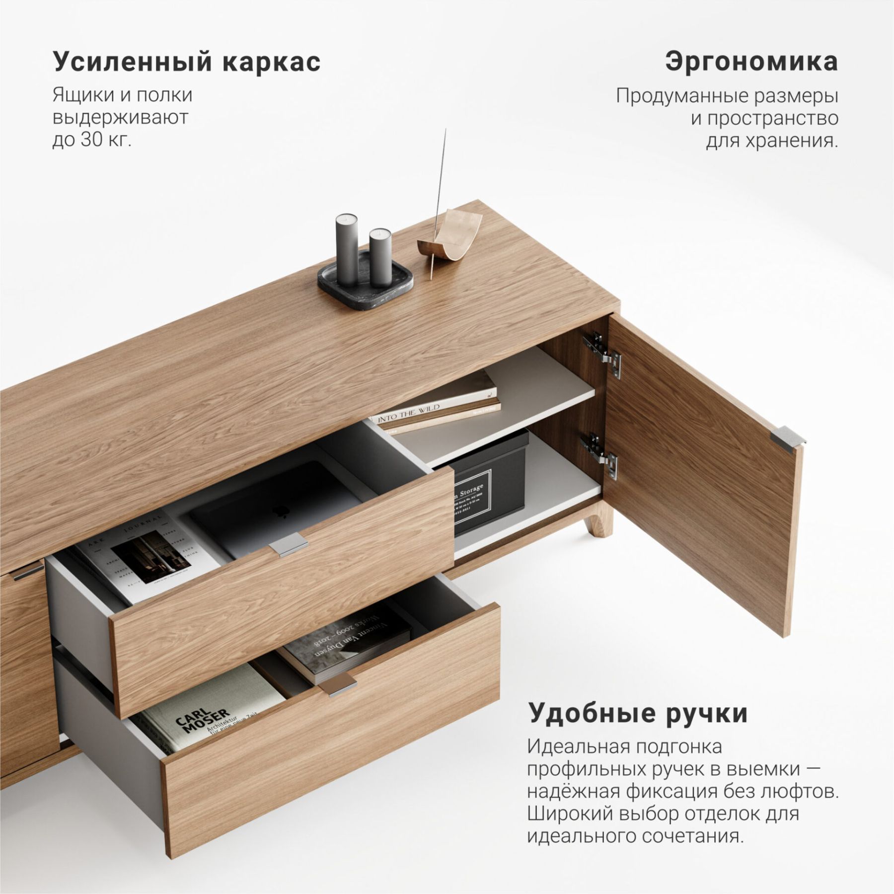 Ящики и полки выполнены из прочного ЛДСП.