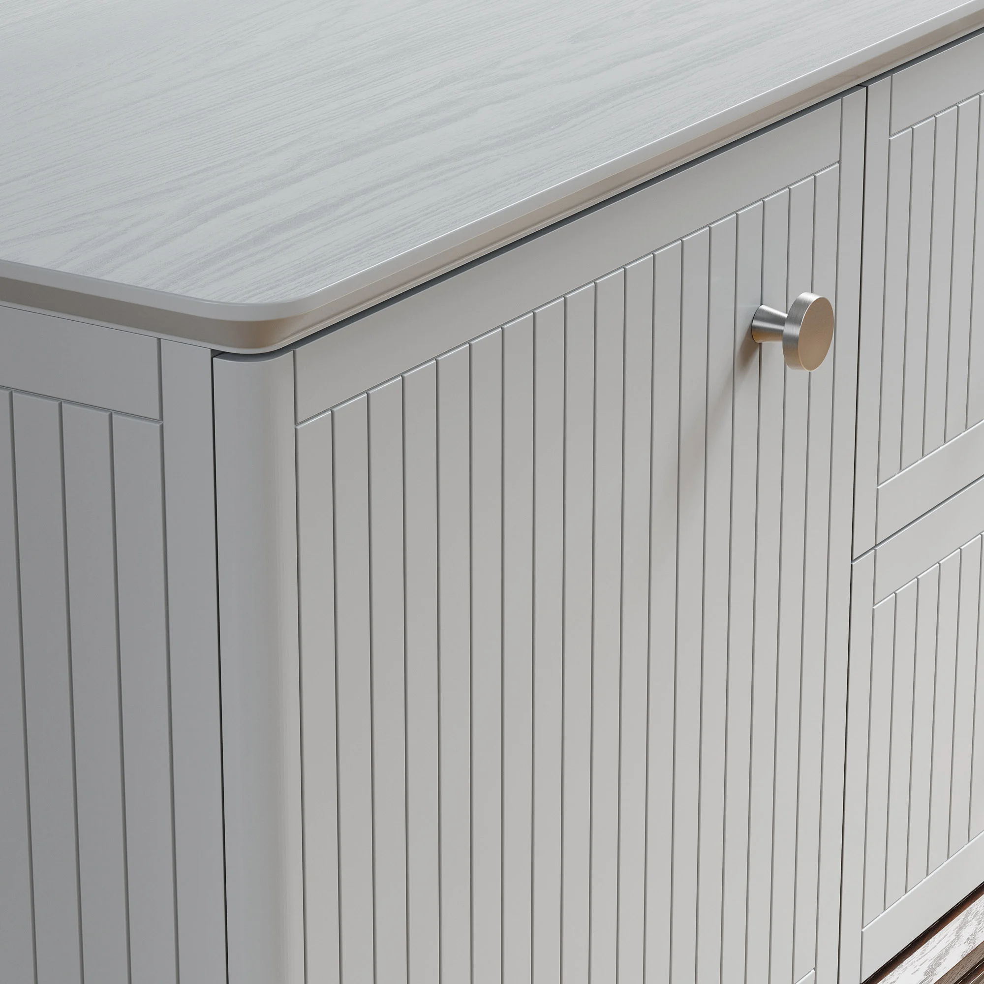 Два просторных ящика для хранения и две секции с полками, направляющие с доводчиками, обеспечивающее плавное и бесшумное закрывание, массивные ручки, приятные тактильные ощущения от материалов — из этих деталей складываются впечатления от пользования этим предметом интерьера. Мы никогда не ставим дизайн выше функциональности, именно поэтому каждая деталь служит одному — вашему комфорту.